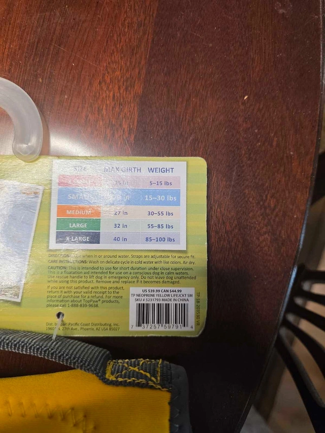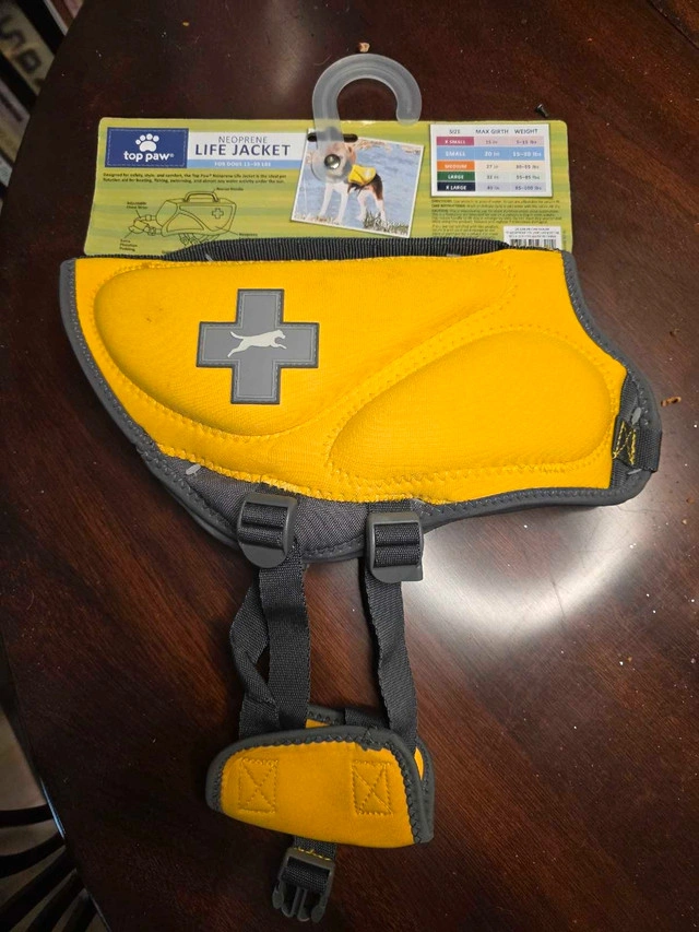 I have two. If you buy two the second one is half price. THis is a new Top Paw neoprene life jacket, designed for dogs weighing 15-30 lbs, offering safety and comfort for boating, fishing, swimming, and water activities. This life jacket is new with tags. * Neoprene construction * Adjustable straps * Rescue handle * Extra flotation padding If the advertisement is still posted, rest assured, the item is available and awaiting its new home! Payment: Cashless payment, Cash accepted