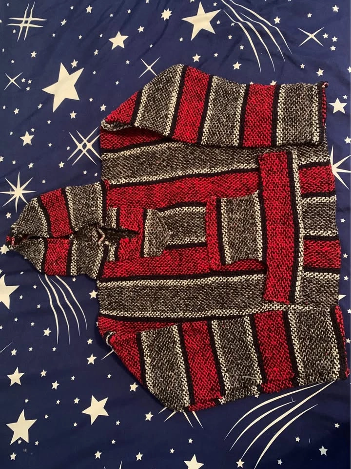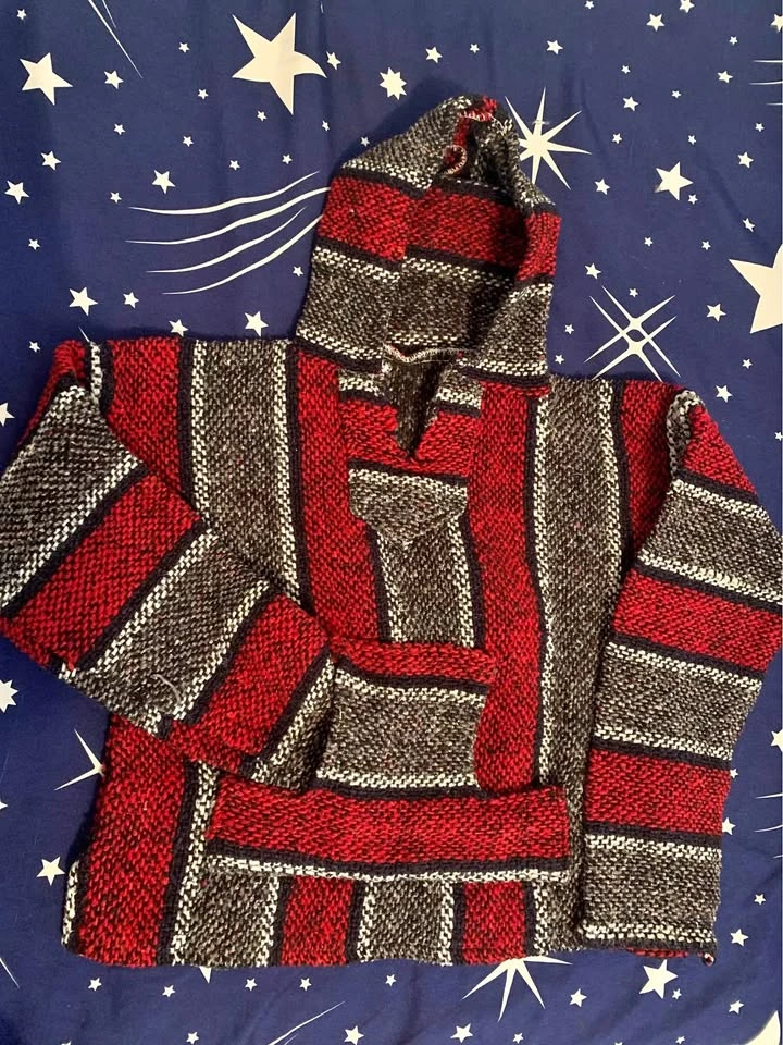 Authentic Baja hoodie from Mexico. It’s made from wool and fits children age 5-7. Very warm, comfortable sweater perfect for the cold weather.