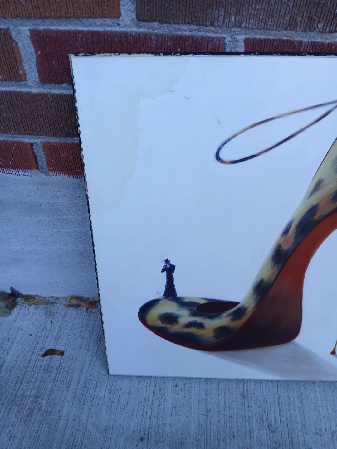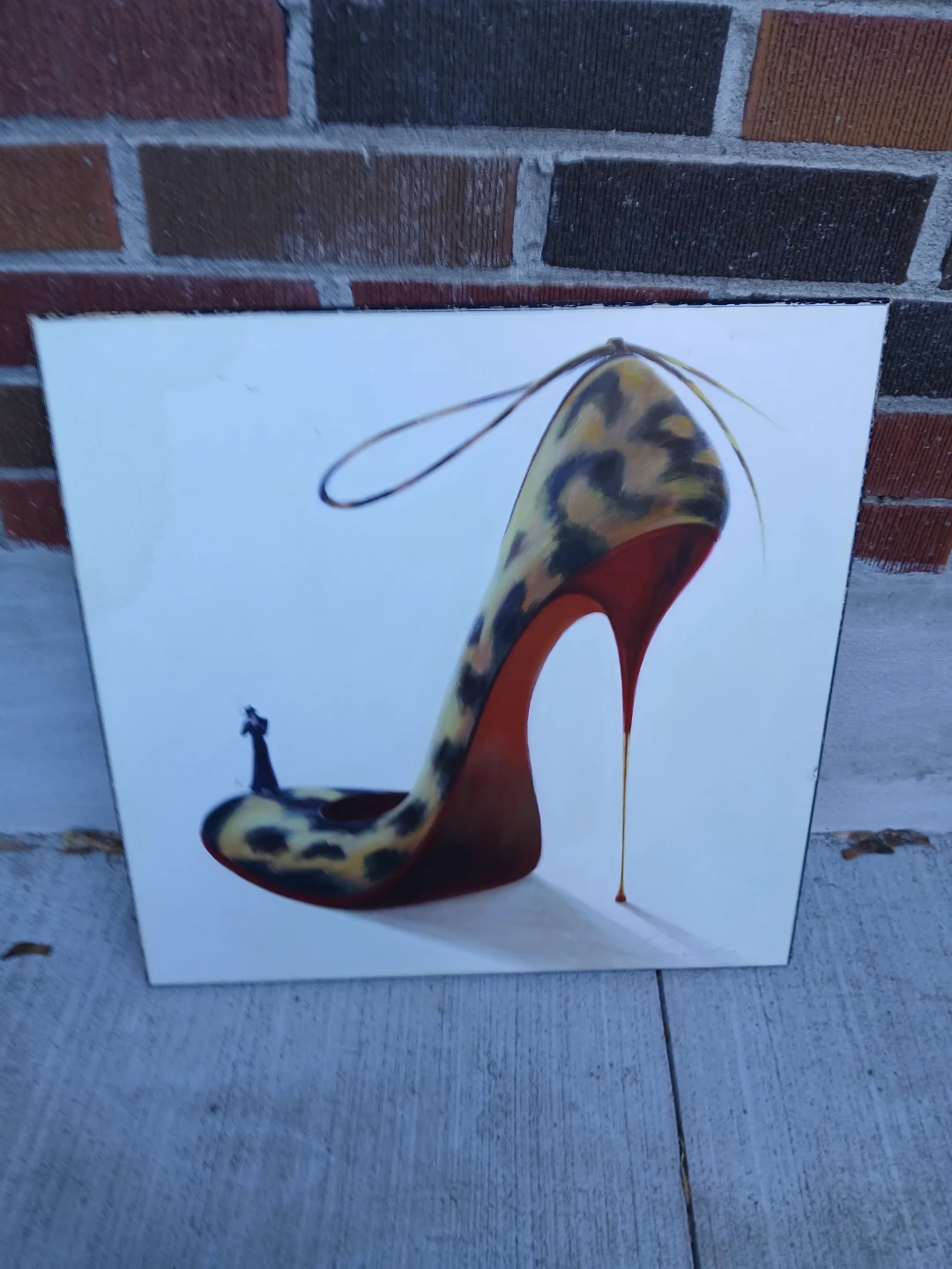 Selling a shoe art print. It features a leopard print high heel with a small figure on the shoe. Great for adding a touch of style to any room. Has a small water mark on the top left side see pictures. Pick up in Scarborough at Markham and Lawrence Ave E