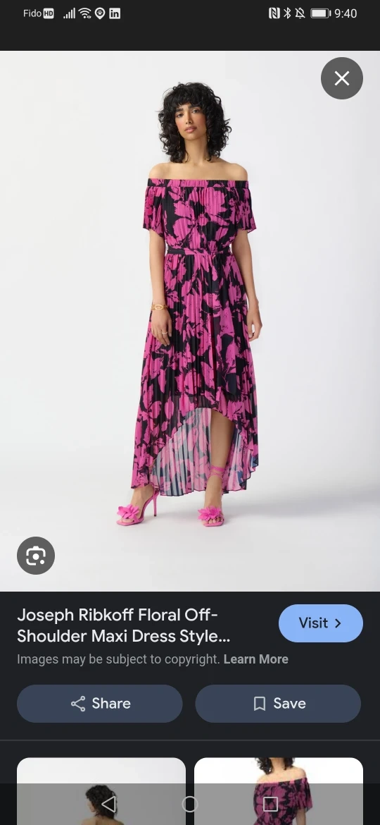This is a Joseph Ribkoff floral off-shoulder maxi dress! It features a beautiful black and pink floral print. Perfect for a special occasion or a night out medium