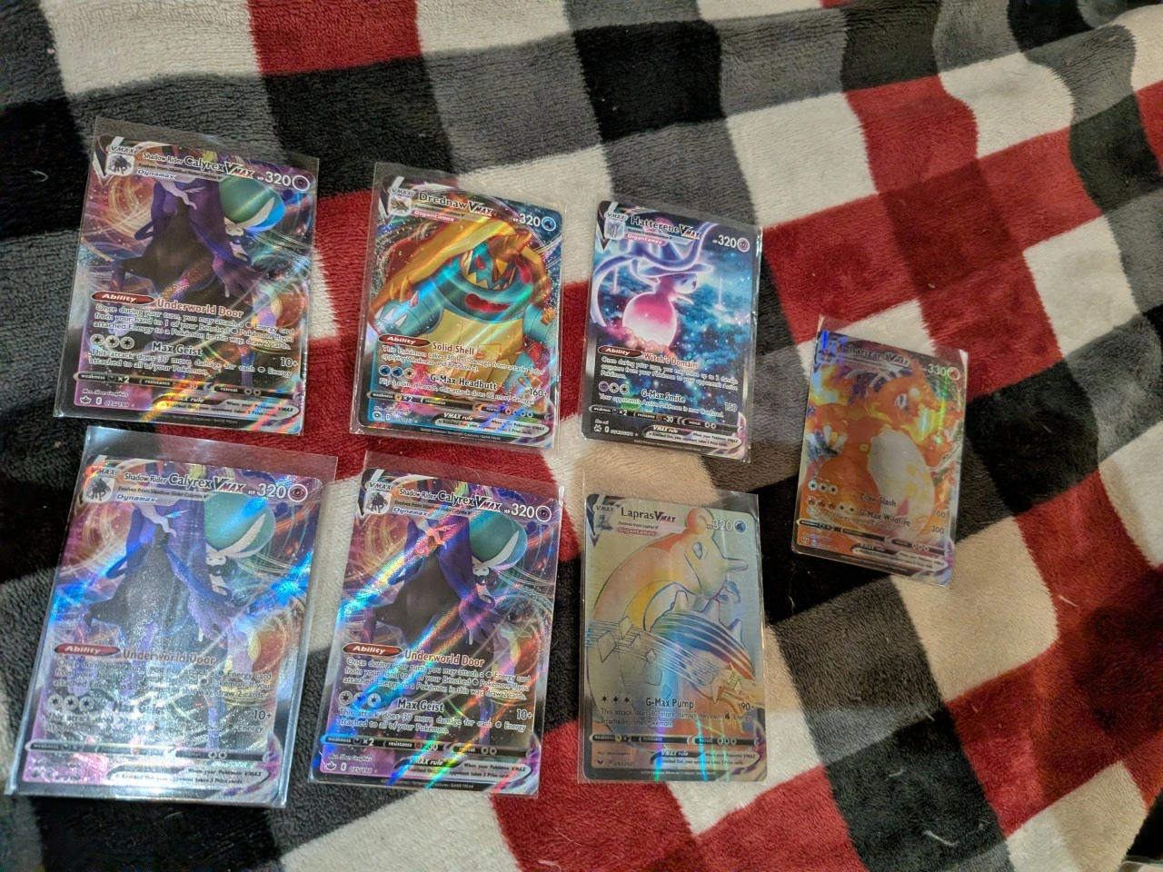 23Selling a collection of Pokémon VMAX cards! Includes popular characters like Charizard, Shadow Rider Calyrex, Drednaw, Hatterene, and Lapras. All cards are in great condition and ready for a new home. Perfect for collectors or players looking to add some power to their deck. I'm aware the Lapras and Charizard cards are fake hence why I'm asking for a total of 20$ the value of the cards currently excluding the fake cards is roughly $27.06.