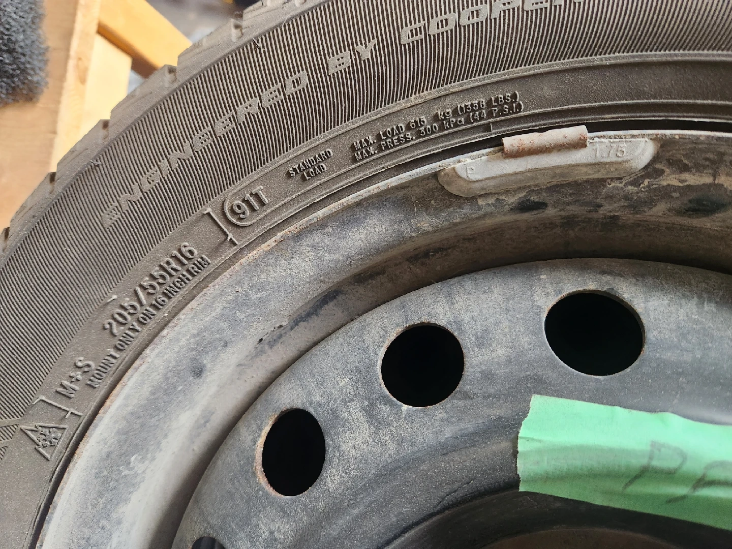 10Selling a set of four MotoMaster winter tires on rims. They are size 205/55R16 and are in used condition. These tires are standard load rated and are designed for use on a 16-inch rim. Used about one winter and lots of life left. Asking $350 obo