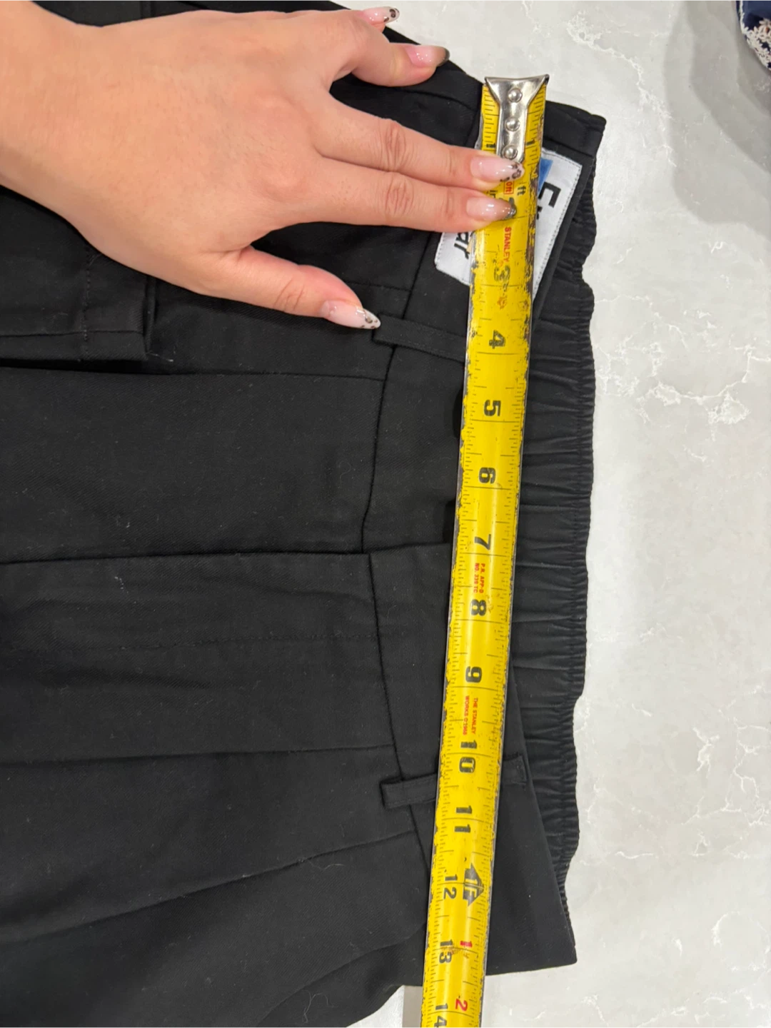 Selling a pair of black pants in size small. They appear to be in great condition and are a versatile addition to any wardrobe! The pants feature an elastic waistband.