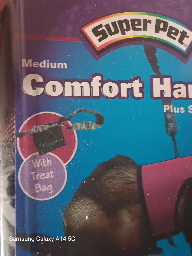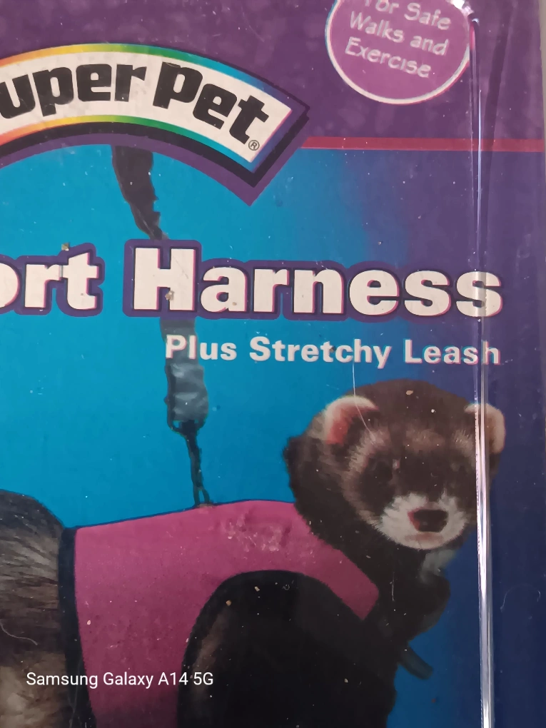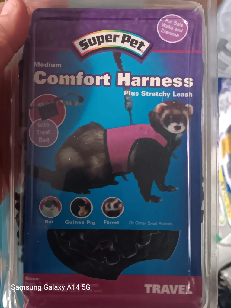 1000+I'm selling a brand new Super Pet Comfort Harness with a stretchy leash. It's a size medium, suitable for small animals like rats, guinea pigs, and ferrets . The packaging states the neck size is 7-9 inches (17.8 - 22.9 cm) and the waist size is 9-11 inches (22.9-27.9 cm). Perfect for safe walks and exercise with your little friend! 647-203-0411