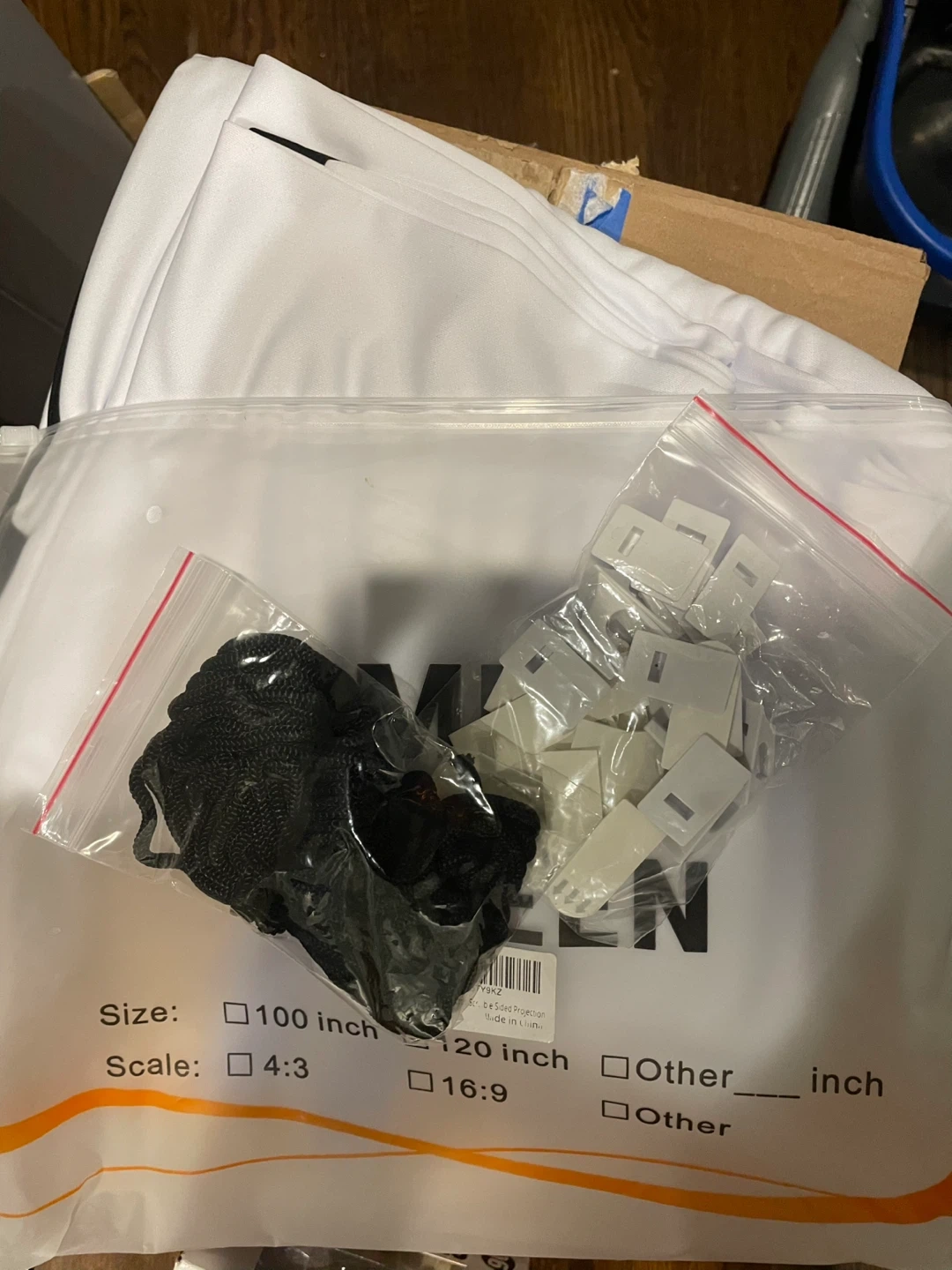 Selling a Simple Projection Screen, still in its original packaging! It's a 120-inch screen with a 16:9 aspect ratio. Perfect for movie nights or presentations. Comes with all the original accessories