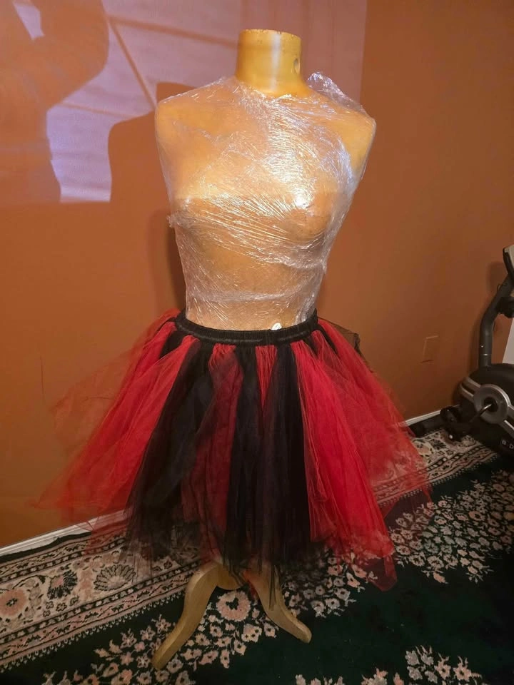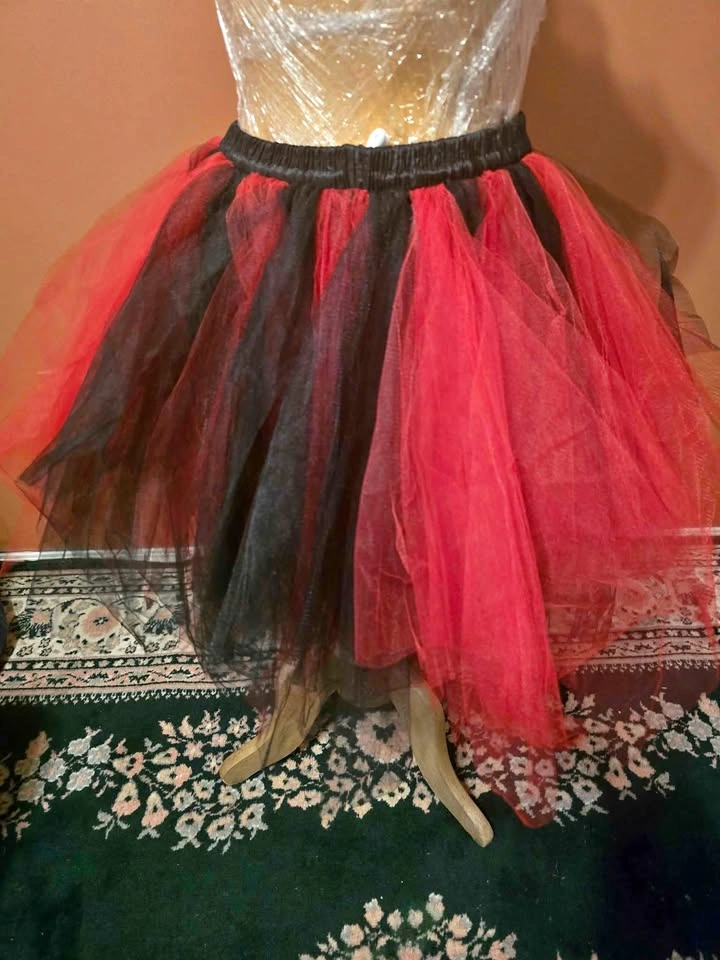 117Condition: Brand New โจ Color: Red & Black โจ Size: One Size (adjustable waistband fits SโL) โจ Material: Soft layered tulle with elastic band โจ Details: Perfect for devil, witch, or gothic fairy Halloween costumes Lightweight, fluffy, and easy to pair with corsets or bodysuits Adjustable fit with waistband toggle ๐ต Price: $10 ๐ Pickup in Mission, BC