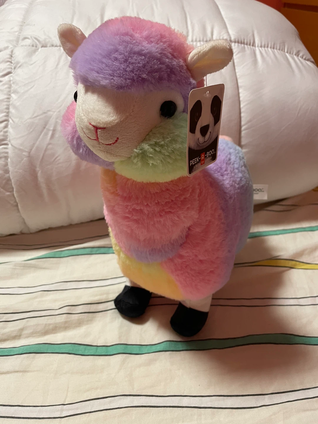 Check out this adorable Peek-a-Boo rainbow llama plush! It's brand new with tags and ready for a new home. This soft and cuddly llama is perfect for kids or anyone who loves cute plushies