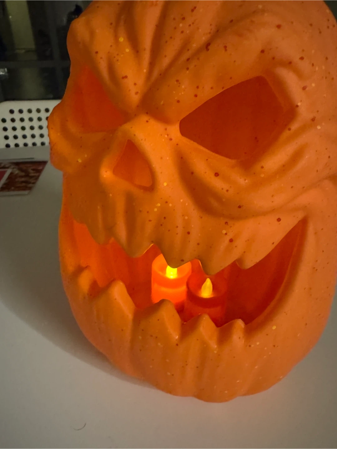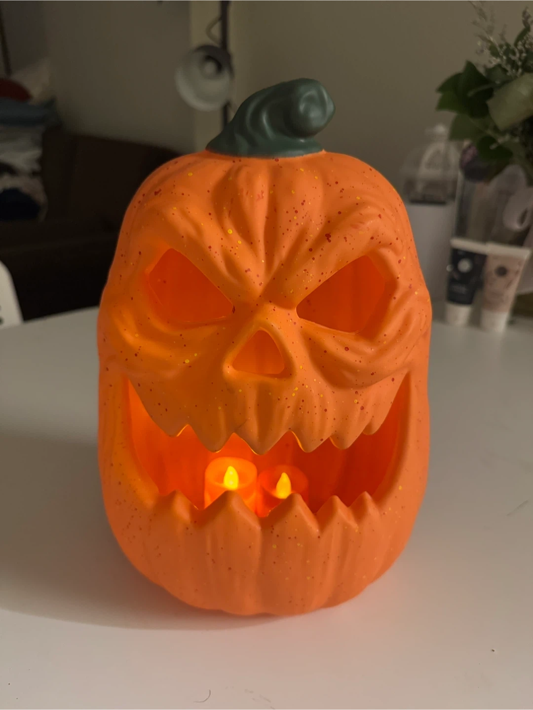 Get ready for Halloween with this spooky pumpkin decoration! It's in great shape and ready to add some eerie ambiance to your home. Perfect for adding a touch of Halloween spirit to any room