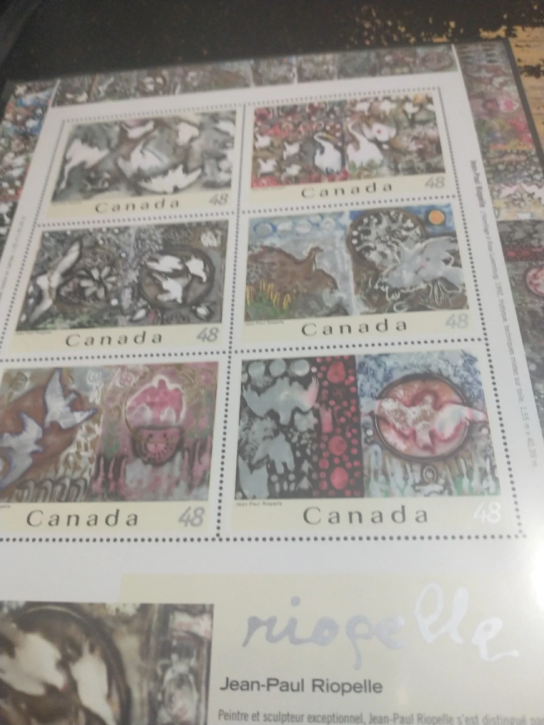 In box 11. A a collection of Jean-Paul Riopelle Canada stamps. These stamps feature unique artwork and are a great addition to any collection