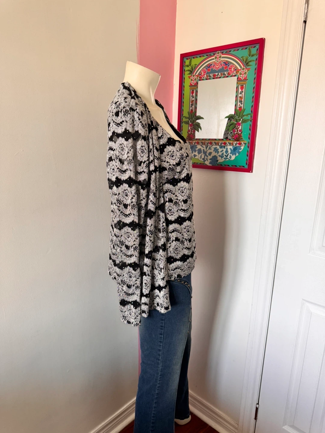 19๐ต๐๐ถ๐๐น: R & M RICHARDS ๐ฎ๐พ๐๐: No tag, would say its L ๐๐๐ถ๐๐๐๐๐๐๐๐๐: ย ย Length: 25โ with cardigan, 22โ without ย ย Pit-to-Pit: 21โ ย ย Shoulder Width: 7โ ย ย Sleeve Length: 24โ ย ย Hem Length: 24โ ย ย Sleeve Cuff Length: 4โ ย ย Neckline Depth: 6โ ๐๐๐๐น๐พ๐๐พ๐๐: EUC