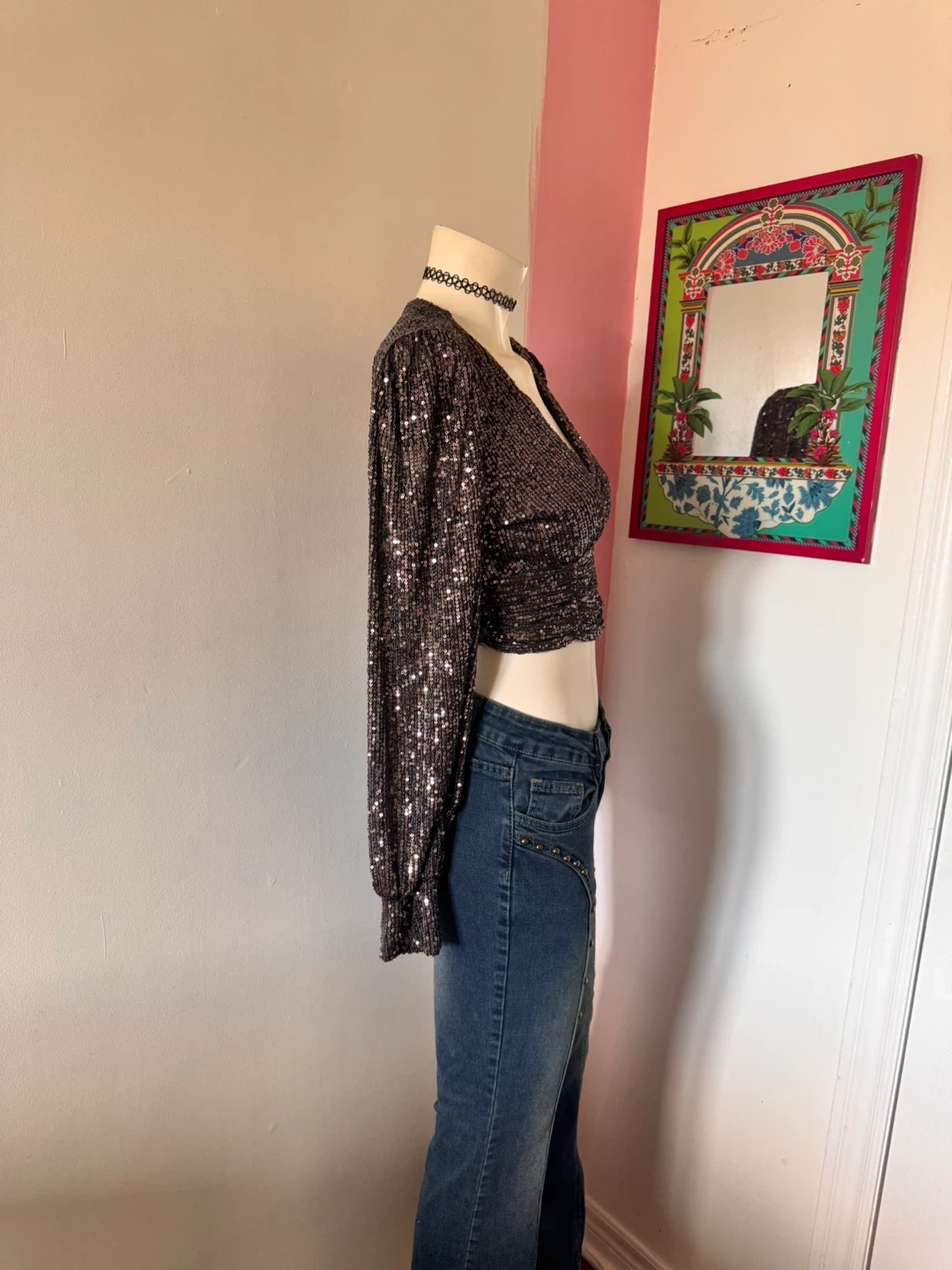 19๐ต๐๐ถ๐๐น: Sincerely Jules ๐ฎ๐พ๐๐: M ๐๐๐ถ๐๐๐๐๐๐๐๐๐: ย ย Length: 15โ ย ย Pit-to-Pit: 16โ ย ย Shoulder Width: 8โ ย ย Sleeve Length: 24โ ย ย Hem Length: 14โ ย ย Sleeve Cuff Length: 4โ ย ย Neckline Depth: 9โ Side Zipper: 6โ ๐๐ถ๐๐๐๐พ๐ถ๐: Polyester, Spandex ๐๐๐๐น๐พ๐๐พ๐๐: EUC, some loose threads/missing sequins
