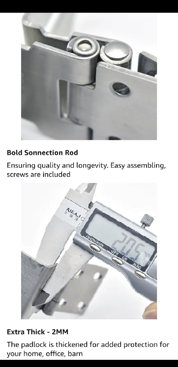 【Extra Thick】 2mm thickness. Compared to others, our hasp is thicker to add protection for your home, office, barn