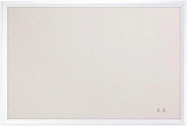24Modern white wood finish frame linen board is a perfect and functional solution to pin your notes and messages in any office, home or commercial environment. Use any push pins, thumb tacks or map pins to pin all of your notes, messages, pictures, memos, calendars, menus, reminders and more. Due to the dense board backing material under the board's cork surface, your push pins are firmly gripped and stay in place without falling out. The natural, self-healing cork surface hides push pin holes once the push pins are taken out. Universal mounting system, as it can be hung vertically or horizontally to fit your allocated space. Board Type: Bulletin; Board Width: 30"; Board Height: 20"; Board Depth: 1". Item is located in Port Robinson, if the item is listed its available.