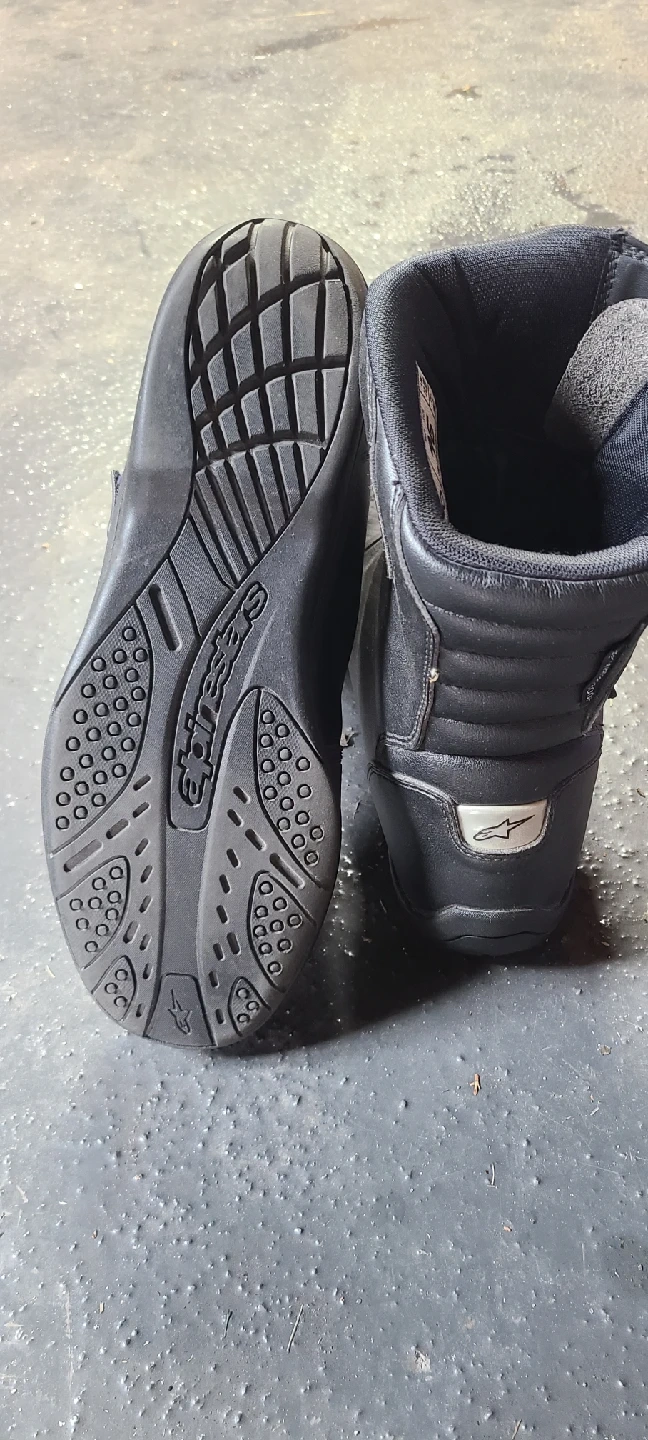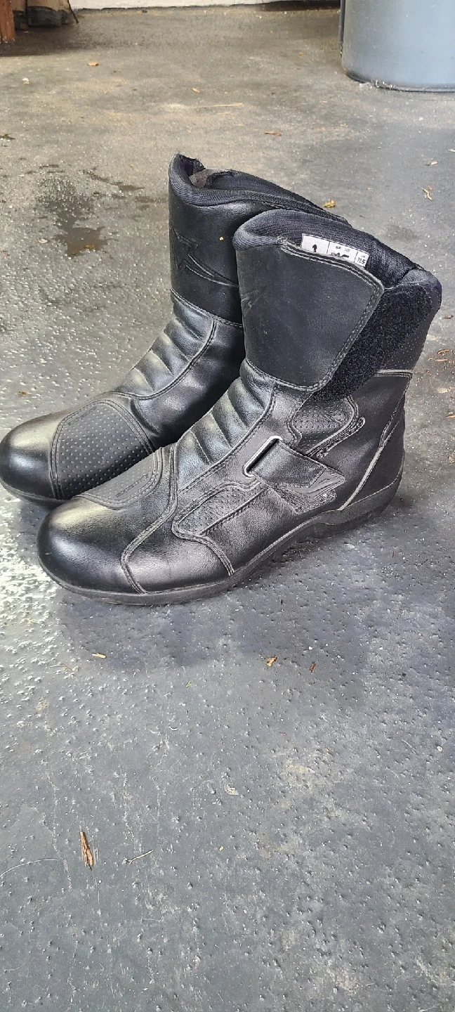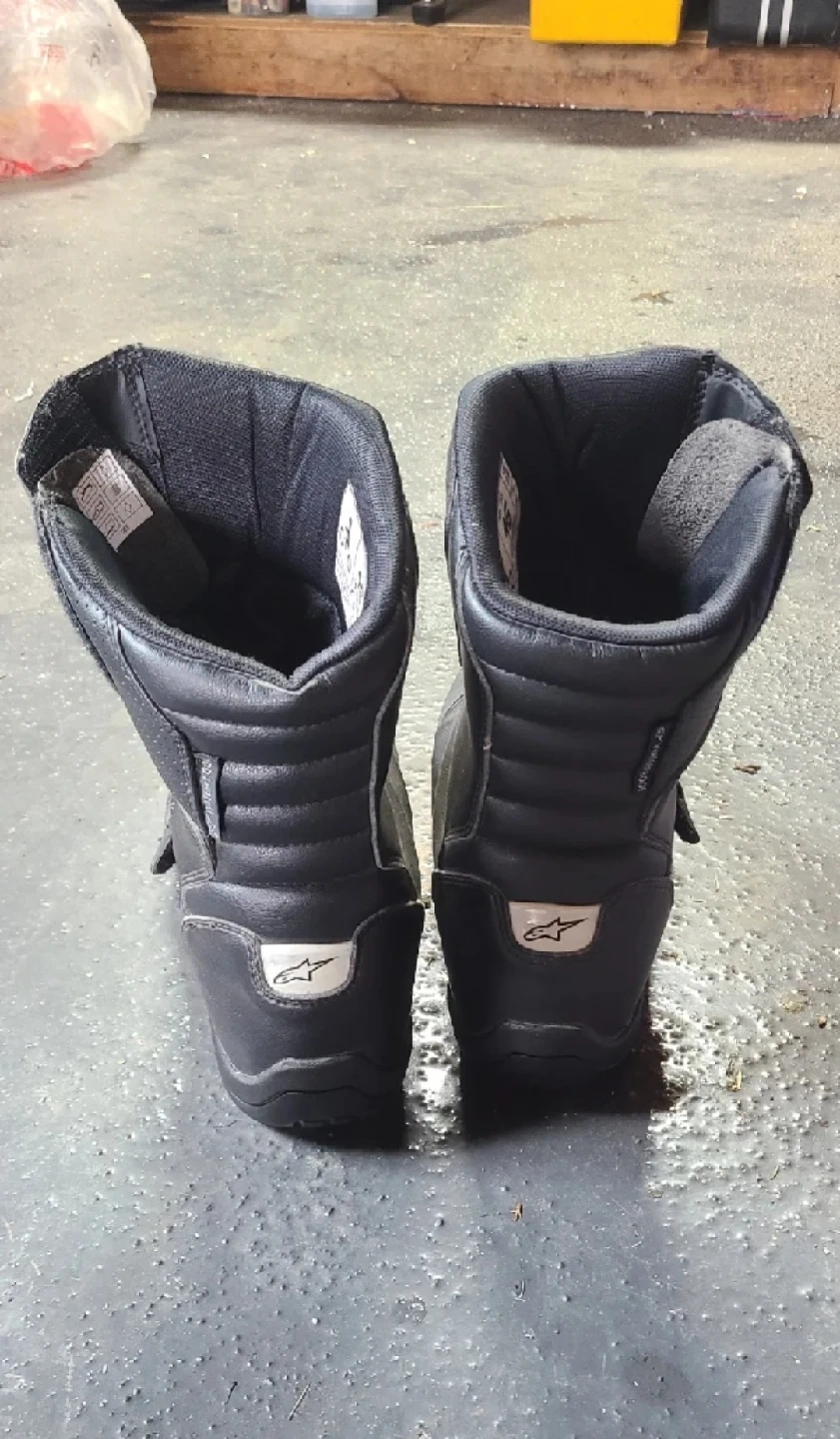 Selling a pair of Alpinestars Ridge waterproof motorcycle boots in black. They are size 46, which translates to a US size 11.5. These boots are waterproof and were used very few times (3 or 4) before I sold my bike.