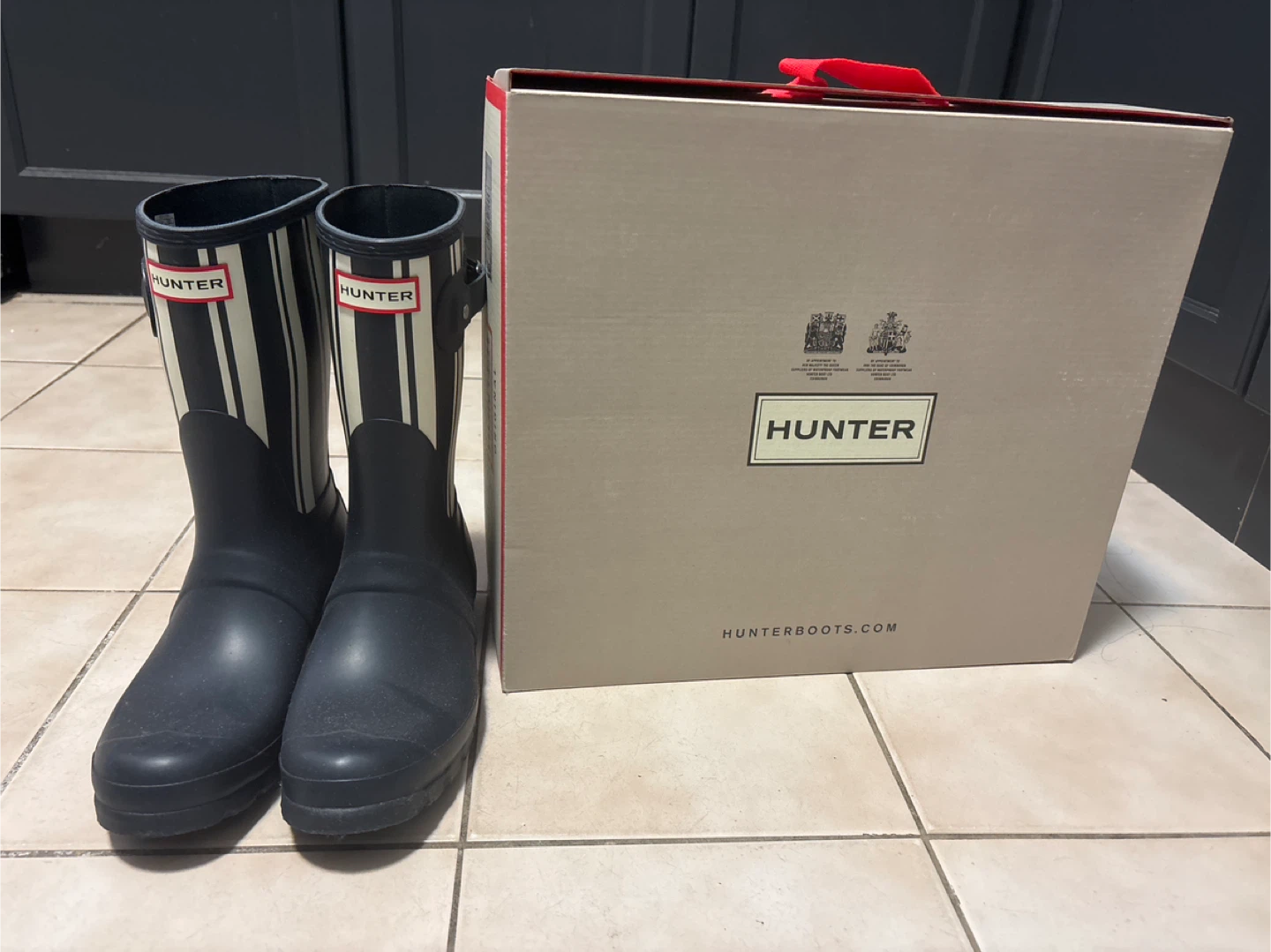 Selling a pair of Hunter Original Garden Stripe Short Boots in US size 8. They are in great condition and come with the original box! These stylish boots are perfect for gardening or rainy days. Only worn once.