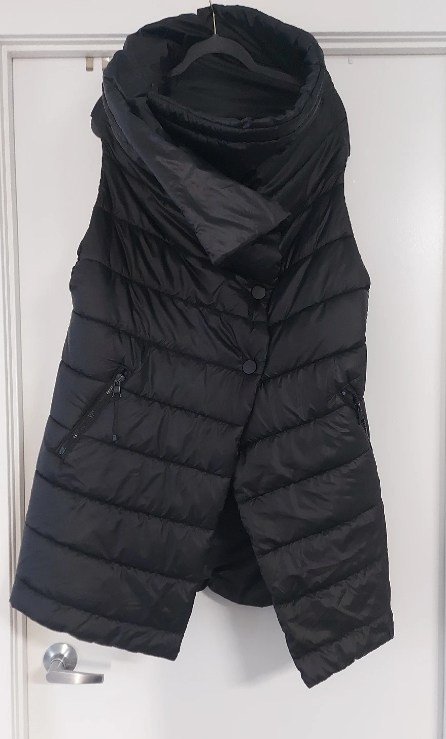 I'm selling a stylish black puffer vest knee length from New Color! It marks 2XL but fits L and Xl and made in Turkey. The outer shell and lining are 100% polyester, making it lightweight and comfortable. Perfect for layering during the cooler months!