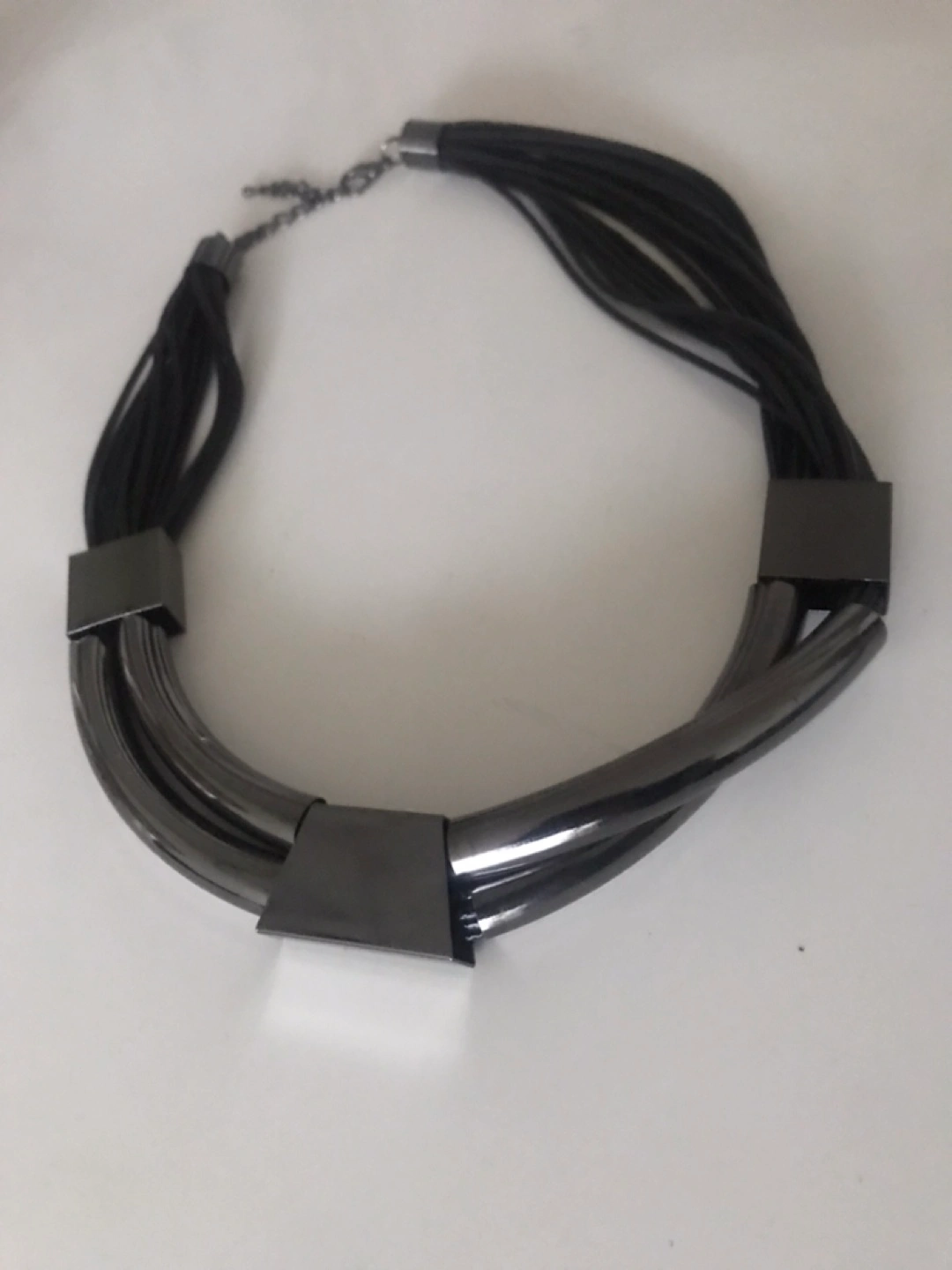 Color: Black cords with Gunmetal Grey geometric metal accents.