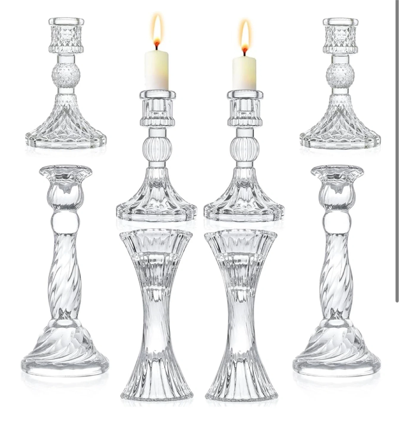 Glass Candlestick Holders - 3 Sets of 8, Clear Taper