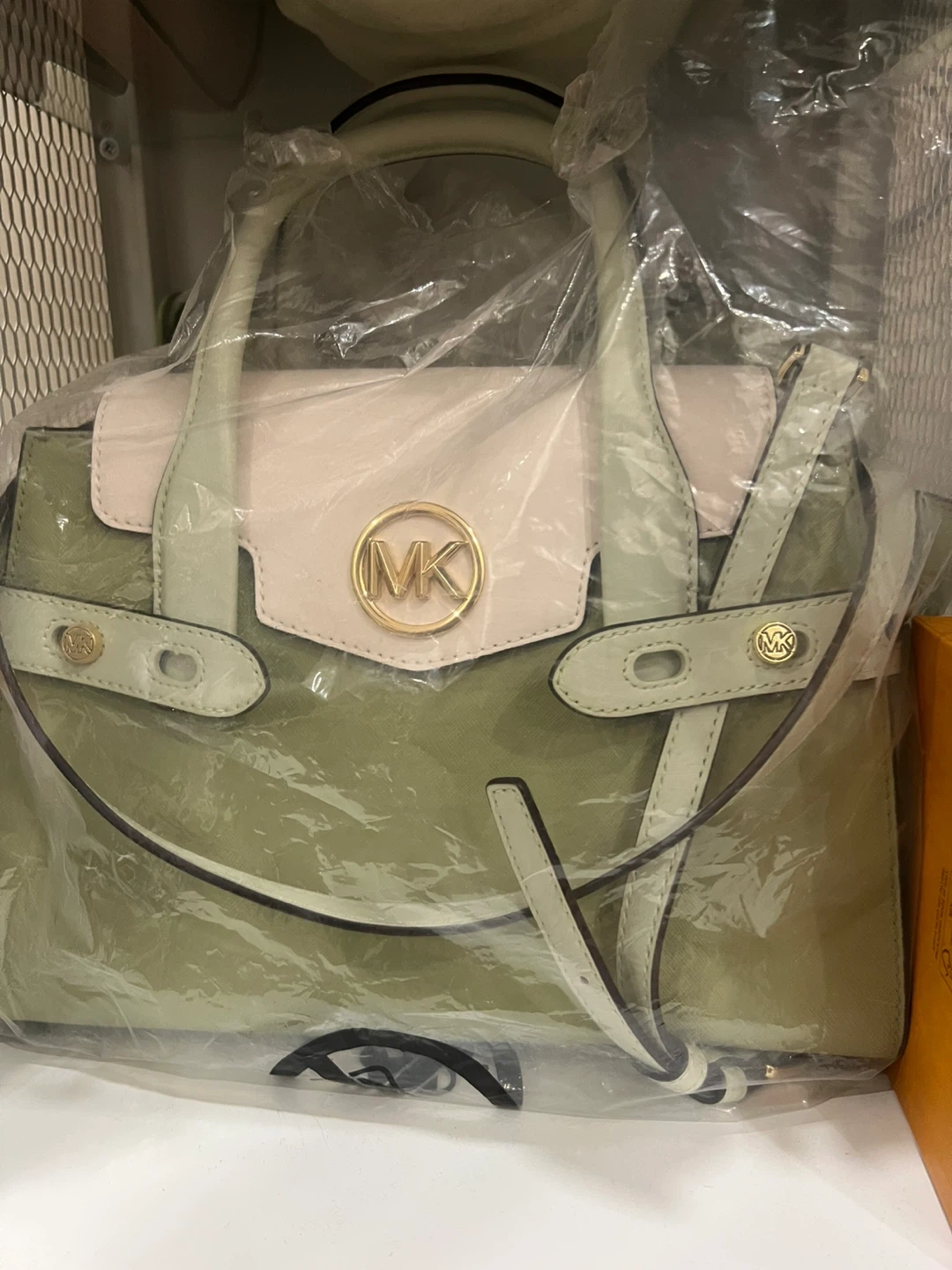 Selling a Michael Kors satchel bag in a lovely green and beige colour combination! It's still in its original packaging, so it's brand new. Perfect for adding a touch of elegance to your outfit