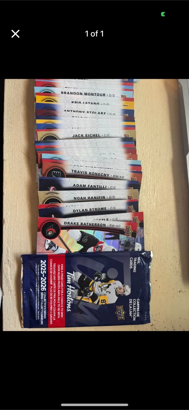 Buy & SellTim Hortons Upper Deck 2025-2026 NHL Trading CardsTim Hortons Upper Deck 2025-2026 NHL Trading Cards$17Base set is 1-1200 chats·0 favorites·1 viewsSELLERAnnamarieAlliston181 reviewWHERE TO MEETCheck Location