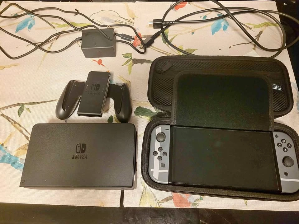 Nintendo Switch OLED with Super Smash Bros. Ultimate Joy-Cons.