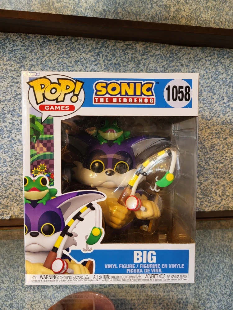 Selling a Funko Pop! Games figure of Big from Sonic The Hedgehog, number 1058. It's in great condition and comes in its original box! Perfect for any Sonic fan or Funko collector, this is not currently s9ld in Canada