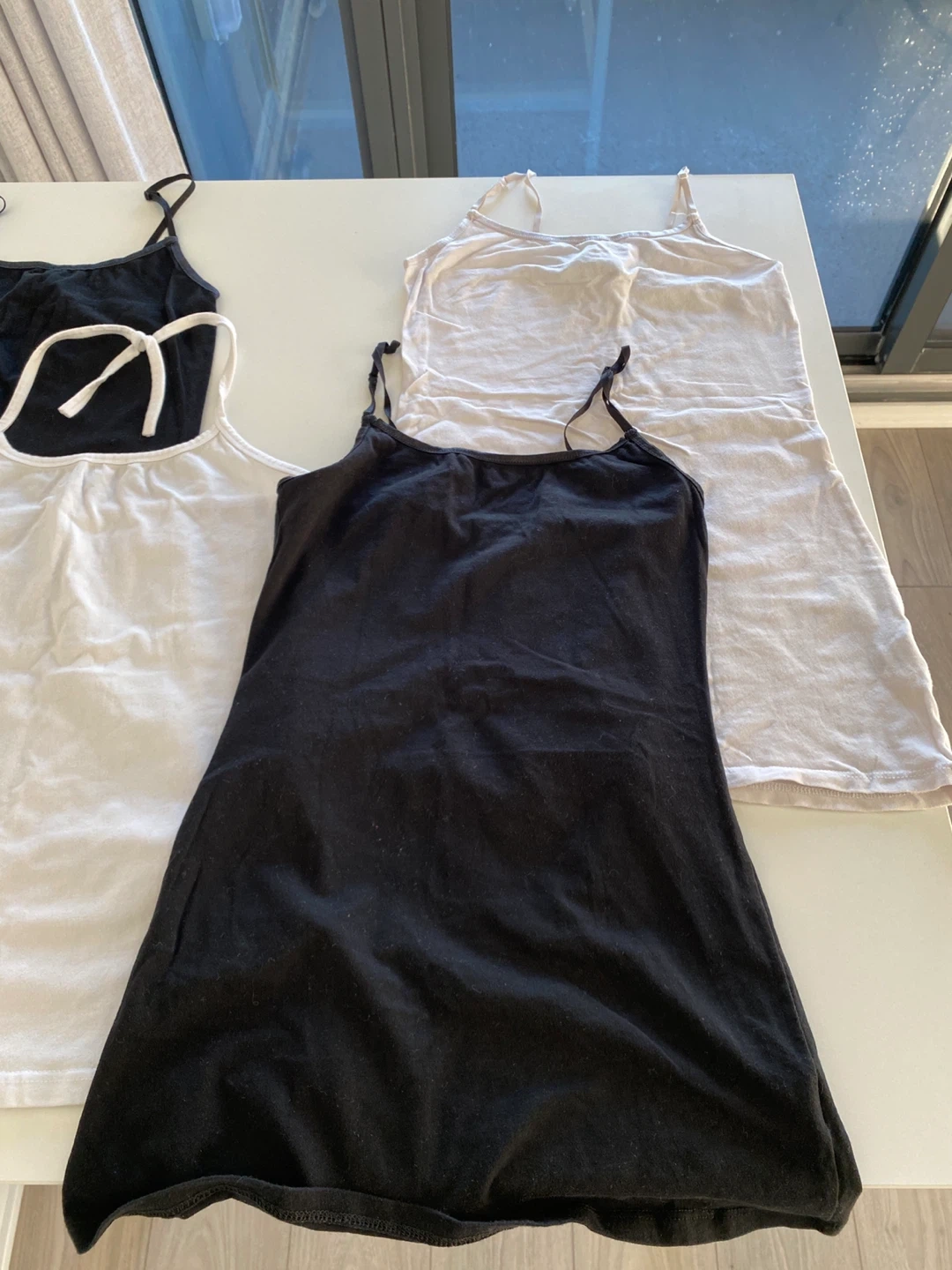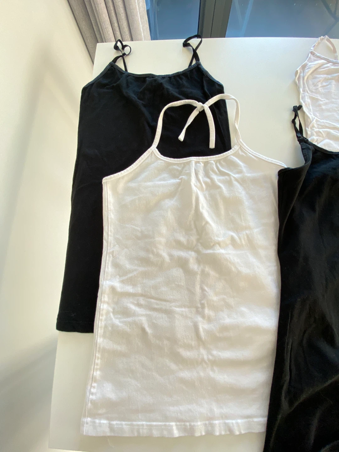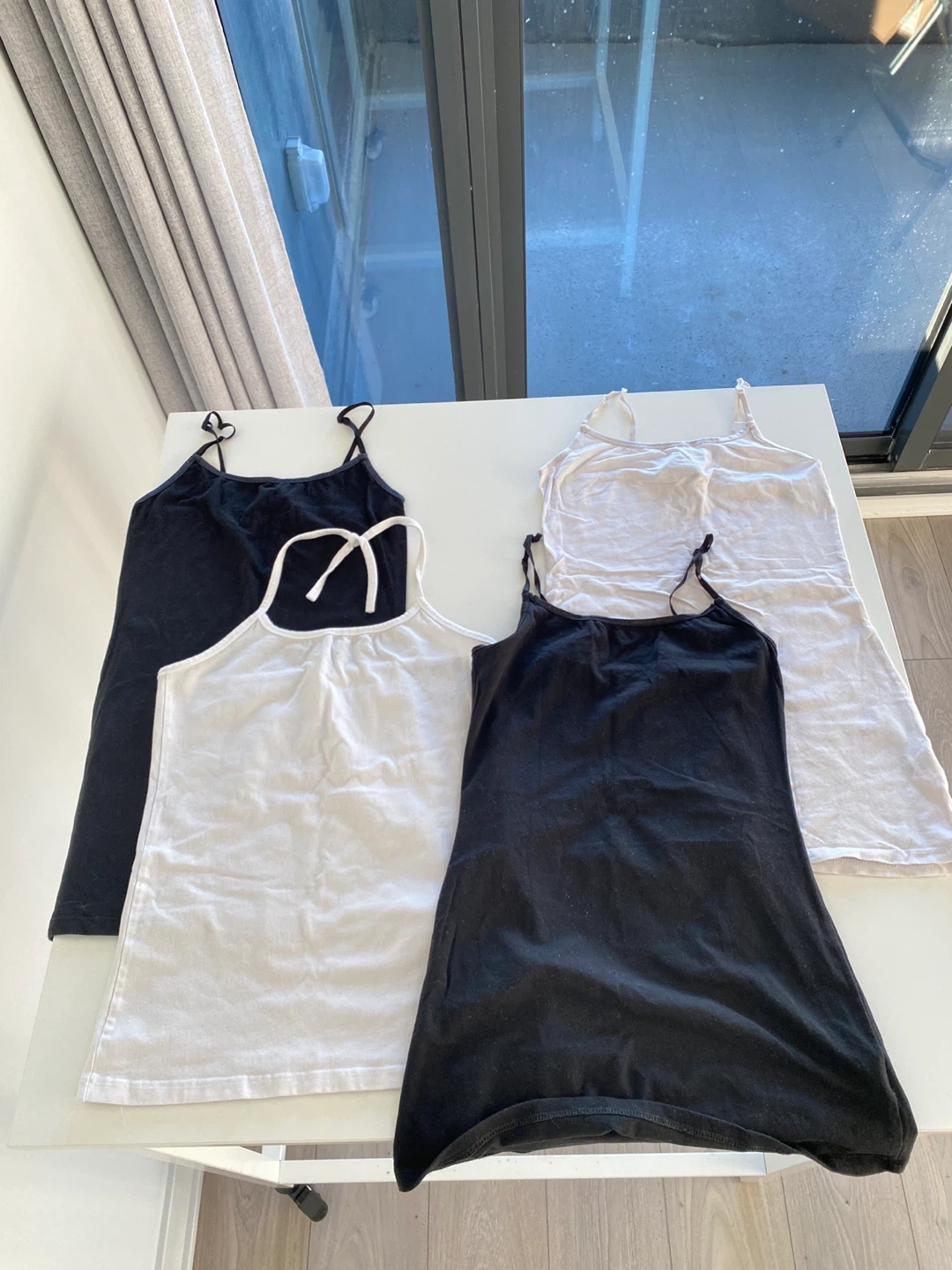 Selling a set of 4 tank tops in black, white, and cream! The cream one is halter top. They're in good condition and ready for a new home.