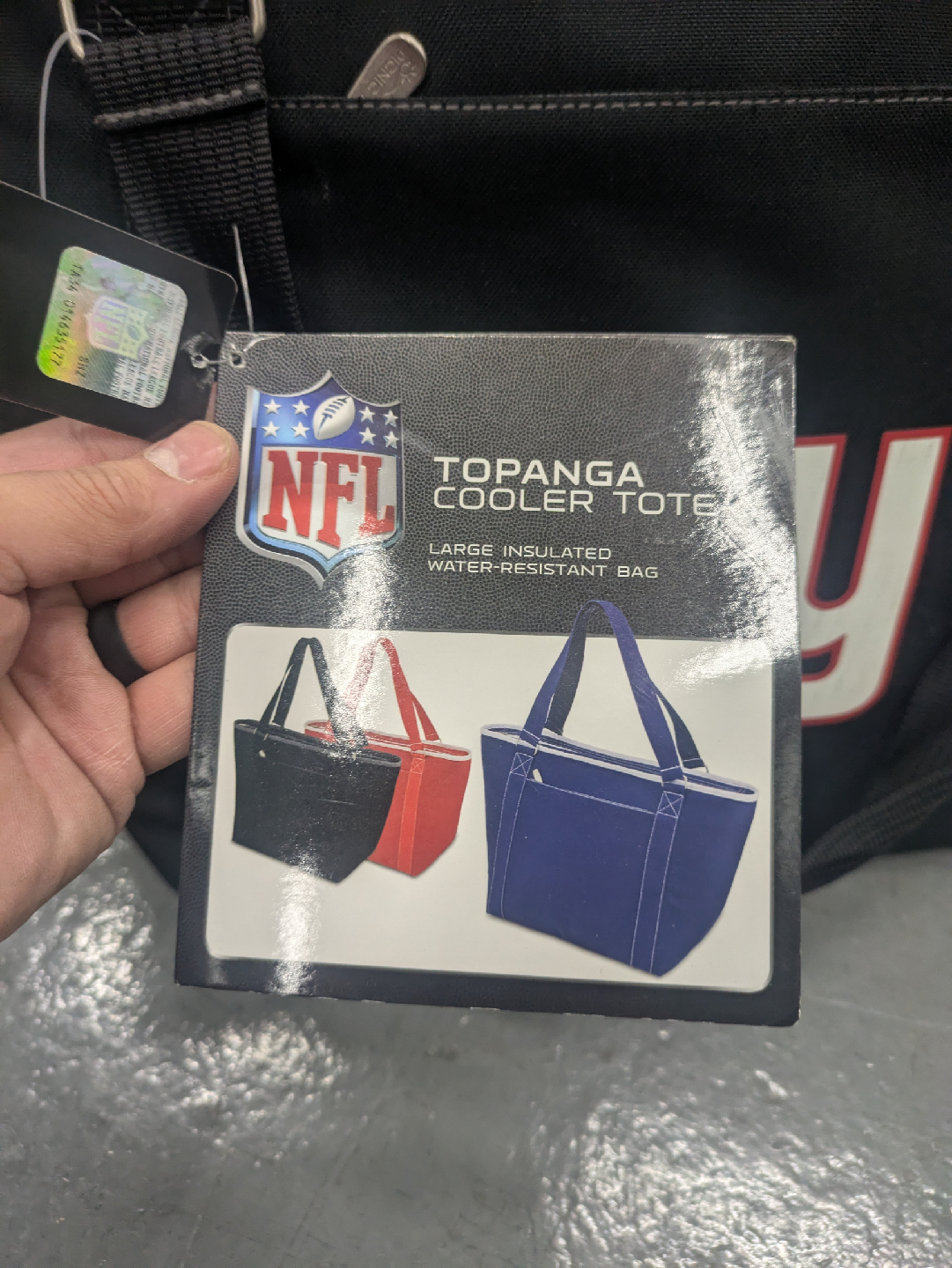Here's an NFL NY Giants Topanga Cooler Tote! It's a large insulated, water-resistant bag. Perfect for keeping your drinks and snacks cool on the go