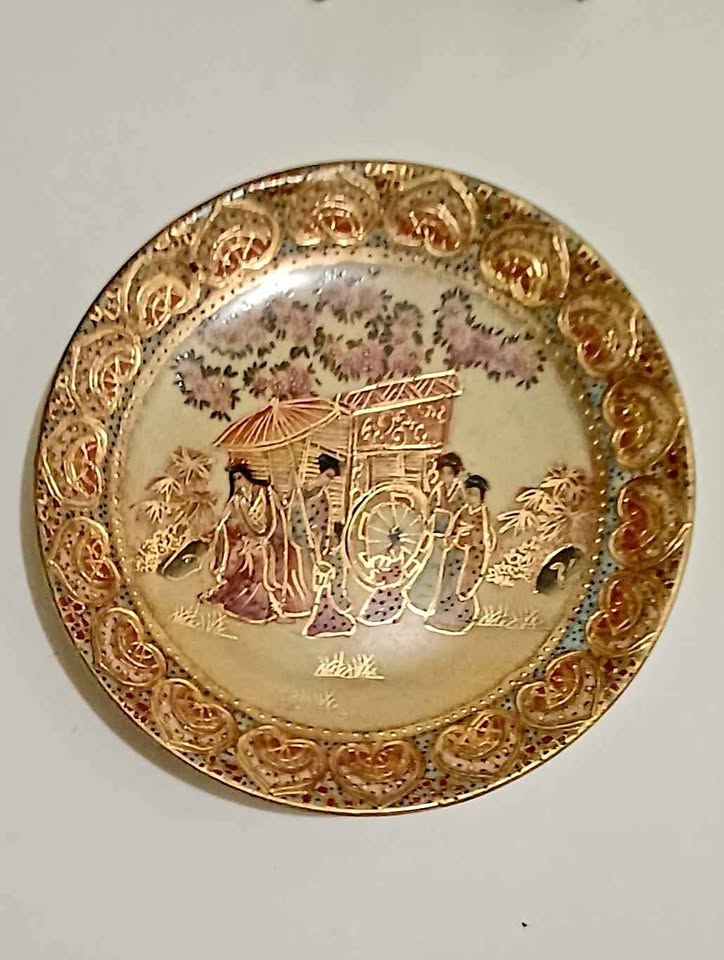 Antique Chinese Hand Painted 24 KT Gold Satsuma Plate