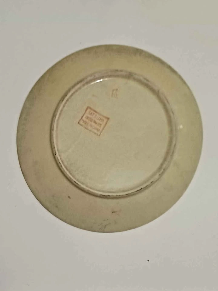 Antique, Collectible, Old Chinese Hand Painted, 24 KT Gold, Family Scene. Porcelain with a Crackled Glaze. Satsuma Plate. Decorative, Household. Diameter : 10 inches.