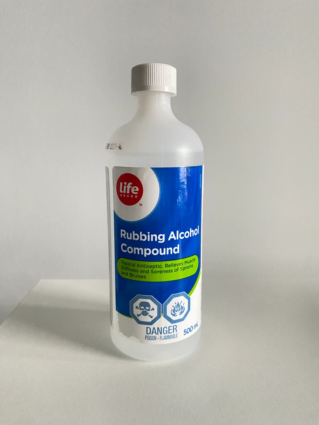 Selling a bottle of rubbing alcohol compound. It's a topical antiseptic that helps relieve muscle stiffness and soreness of sprains.