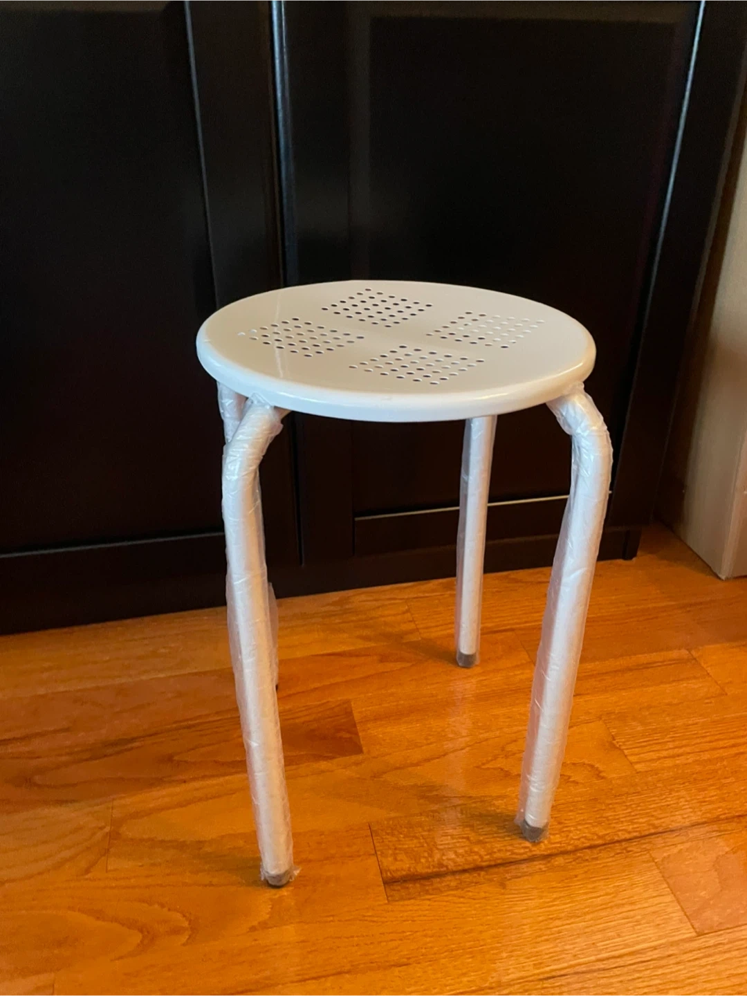 Selling a an IKEA Marius stool! It's white and still in its original packaging. Perfect for adding a simple and functional seat to any room. There’s a small scuff on the seat, but otherwise in great condition (the wrap is still on the legs.)