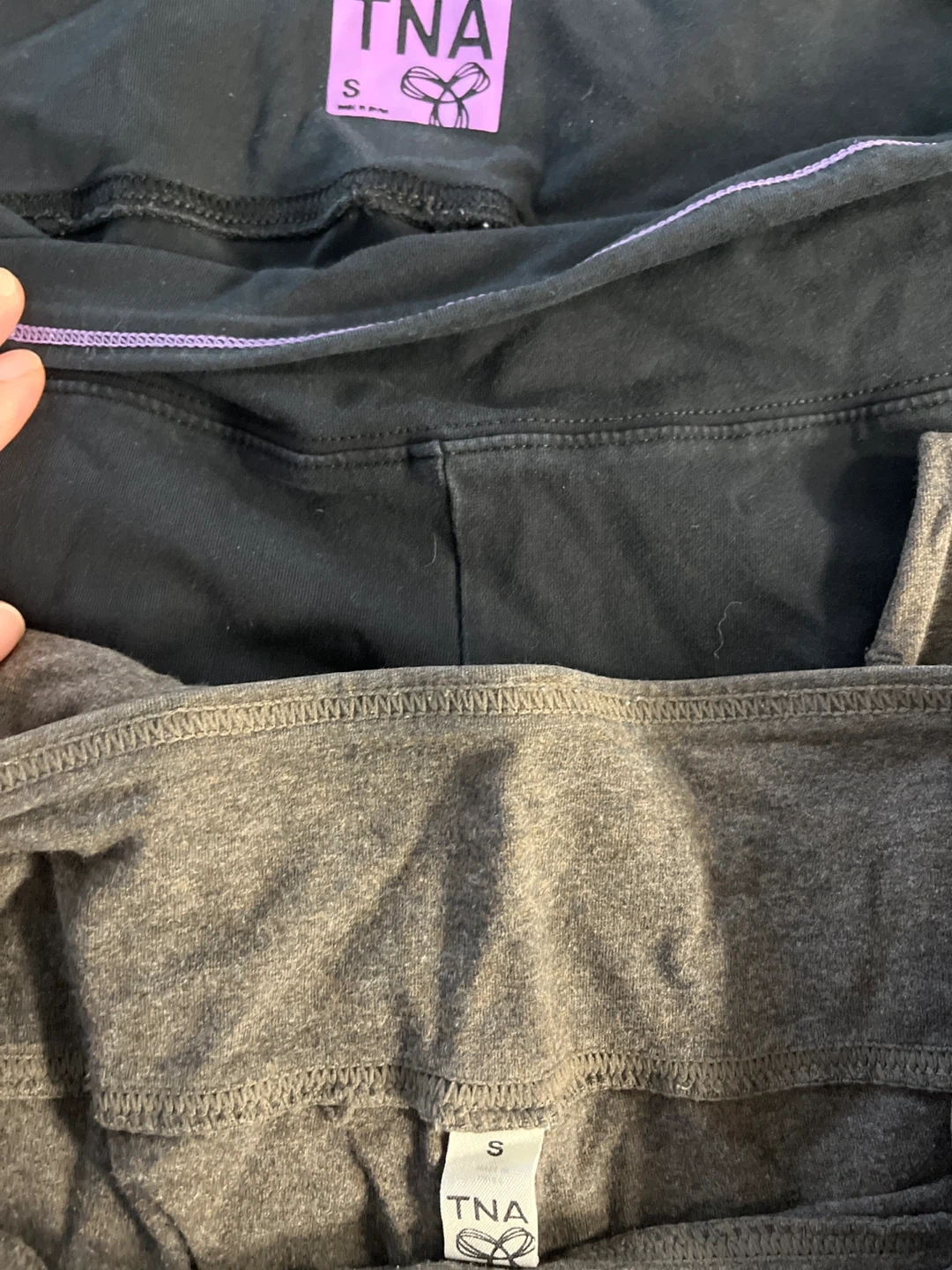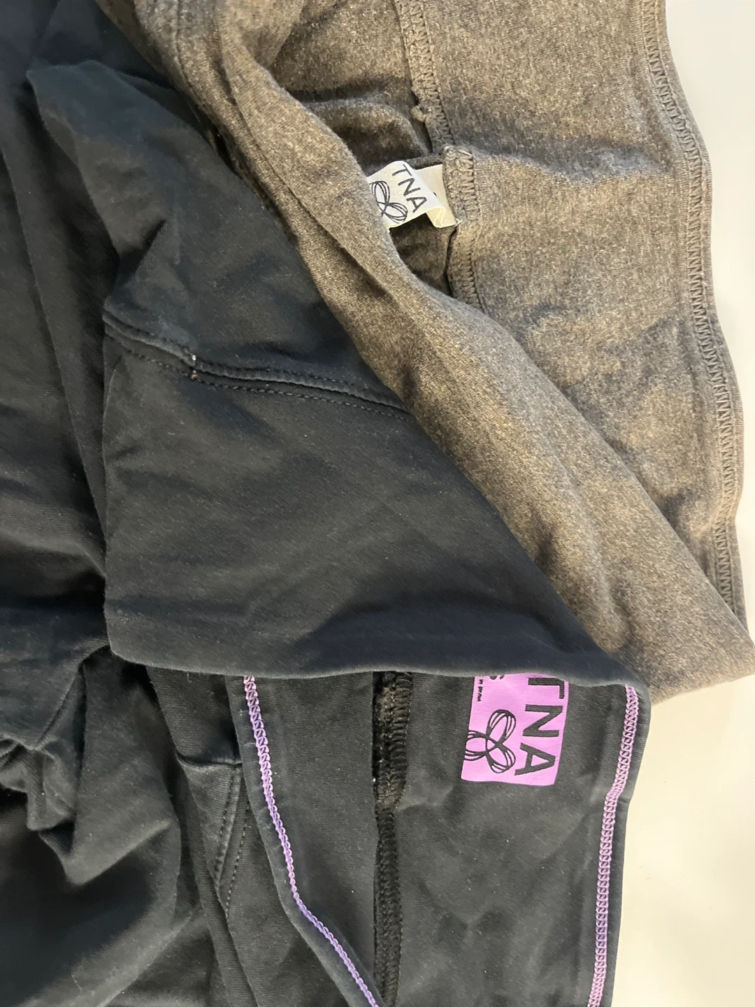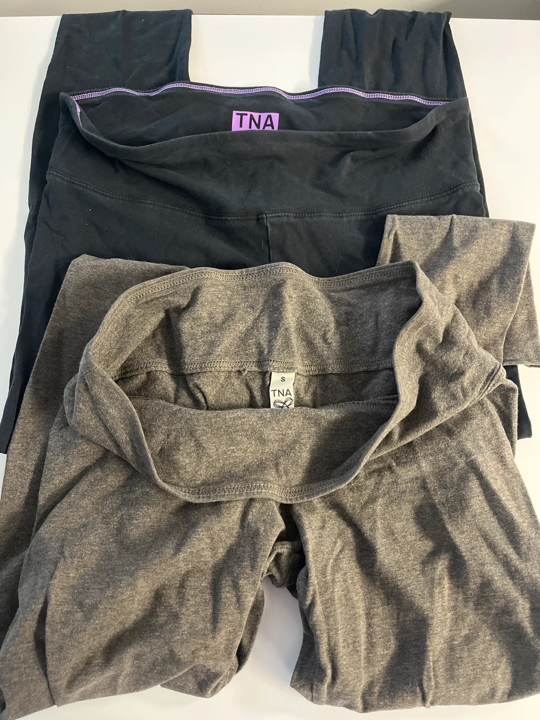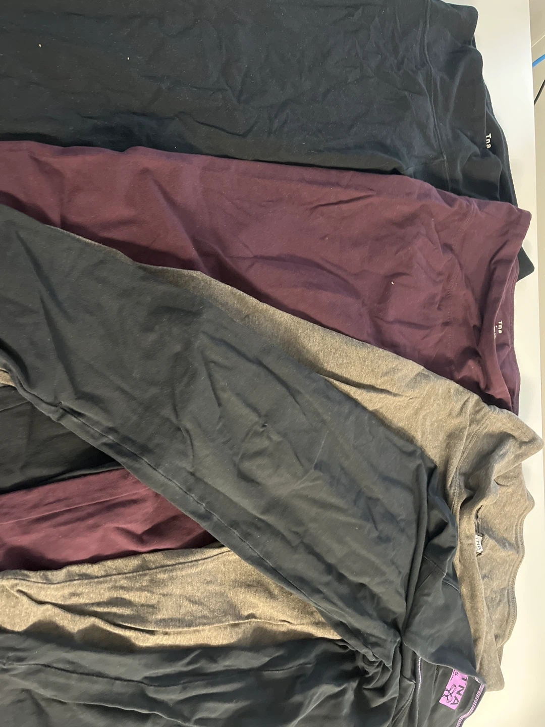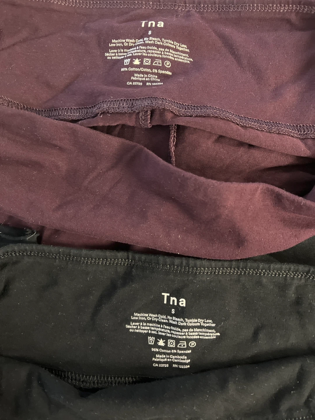 34Selling a bundle of 4 TNA leggings in size small. They come in 2 black, 1grey, and a 1 dark purple colour. They are made of 95% cotton and 5% spandex.