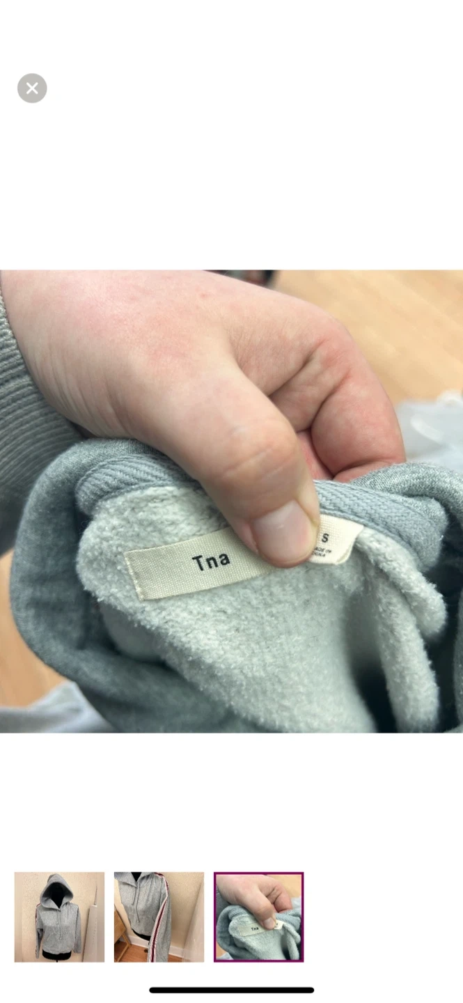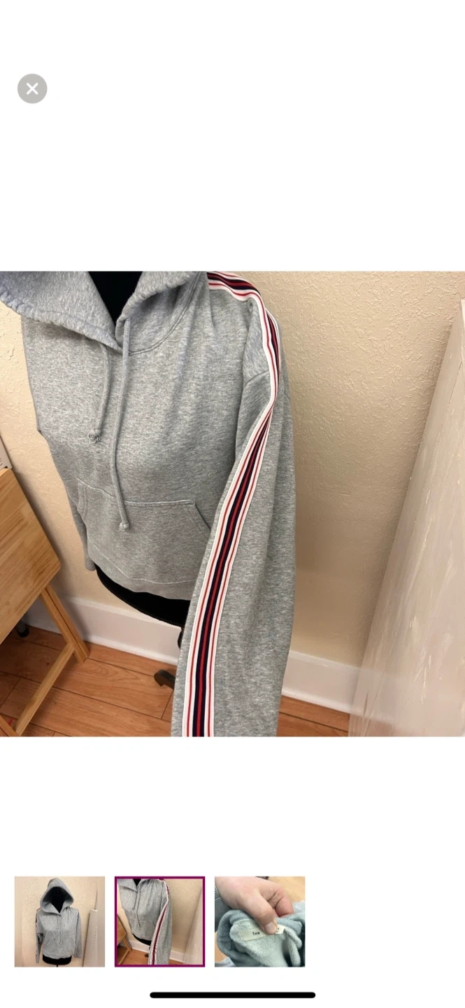 12TNA for Aritzia. Cropped pullover hoodie. Grey with red & blue striped trim on sleeve. Size small. Brand new condition $20 Pickup Kincardine area or Peterborough but I can arrange delivery in port Elgin, walkerton-Durham, wingham-listowel-kw/cambridge/guelph, goderich-bayfield, & Arthur-Orangeville-Newmarket-Lindsay AREAS.