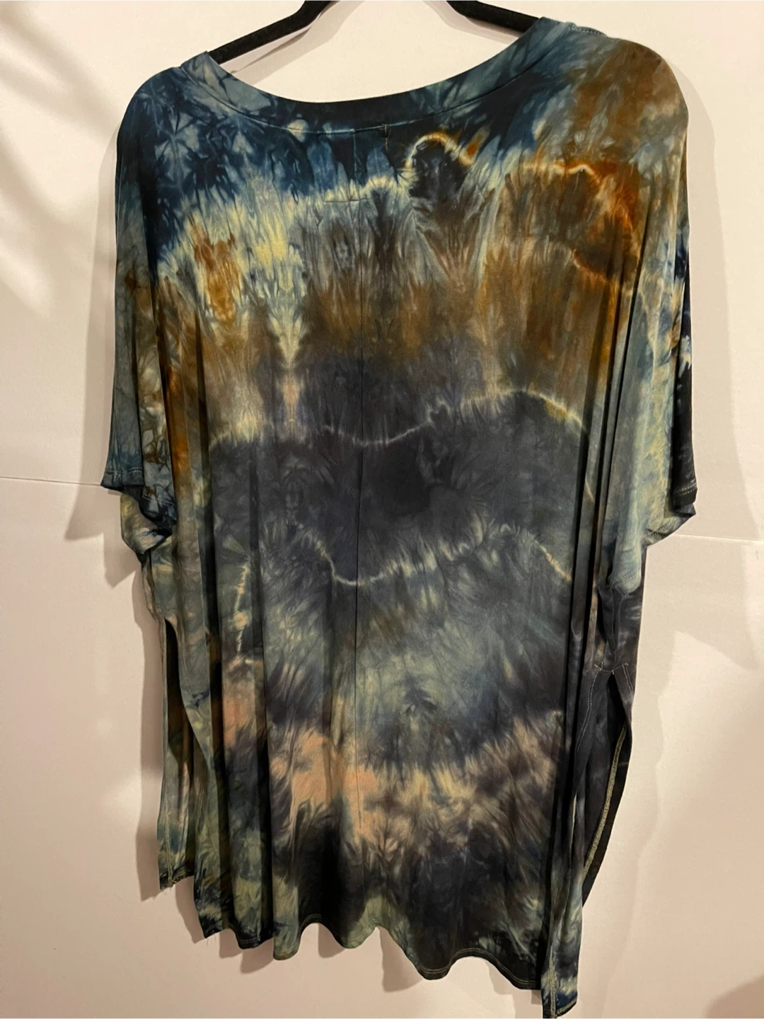 Selling a Rough Tumble tie dye V-neck top! It's in great condition and has a unique pattern. Perfect for adding a pop of colour to your wardrobe! Fits on the larger side.