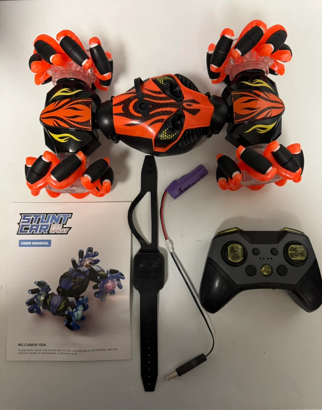 Selling a Kidstinct Stunt Car Eye Spray, perfect for kids aged 8 and up! It features lighting and music, 2.4G remote control, two directional control, and two forms that switch freely. It also includes a user manual and remote control best price $25