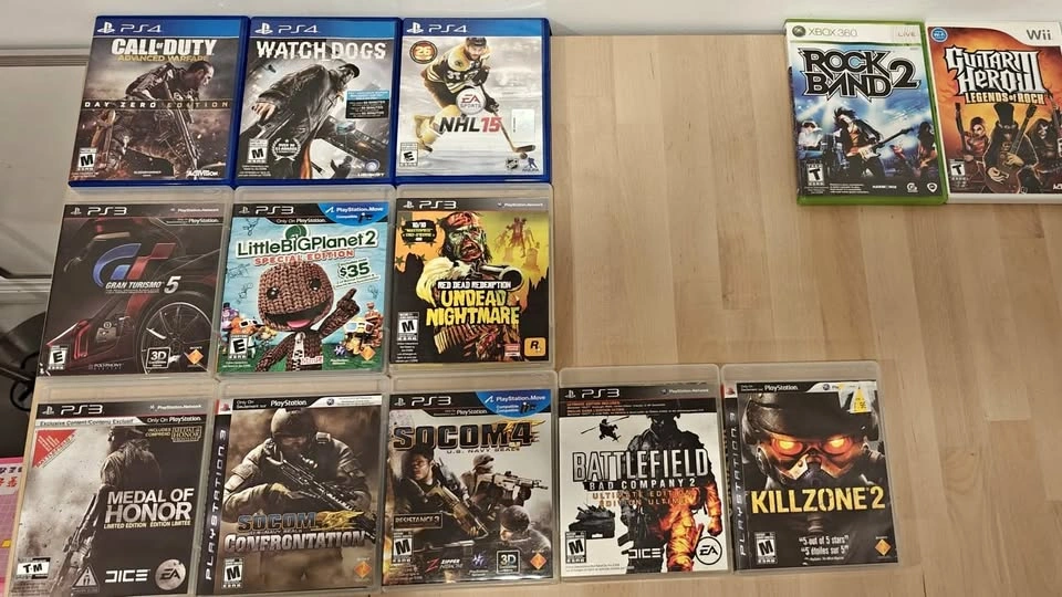 Selling a collection of assorted video games, all in used but like new condition. Each includes its original case and manual. The games shown in the second slide are missing discs, but if you’re buying, you can choose one of those cases for free as an extra!