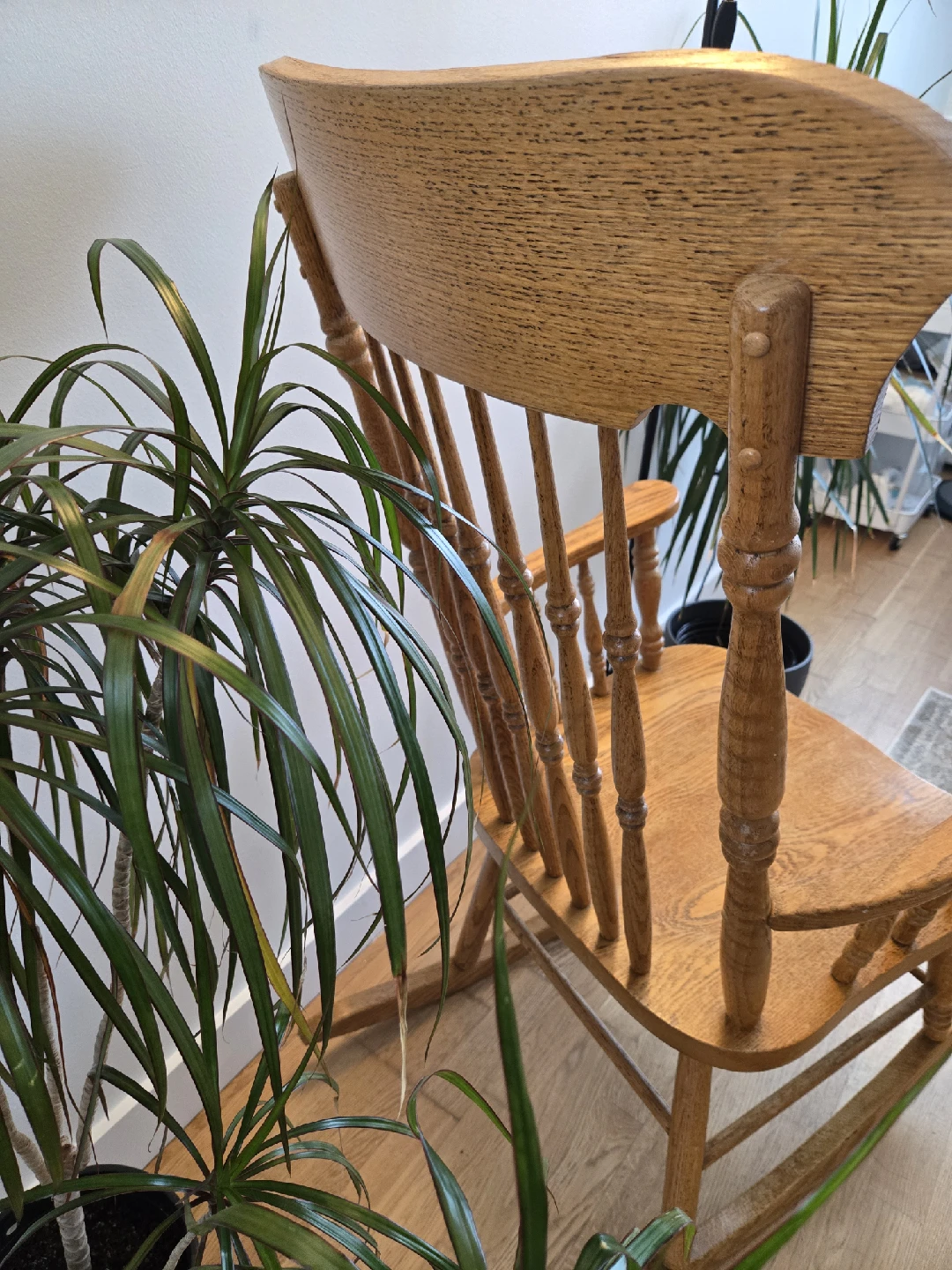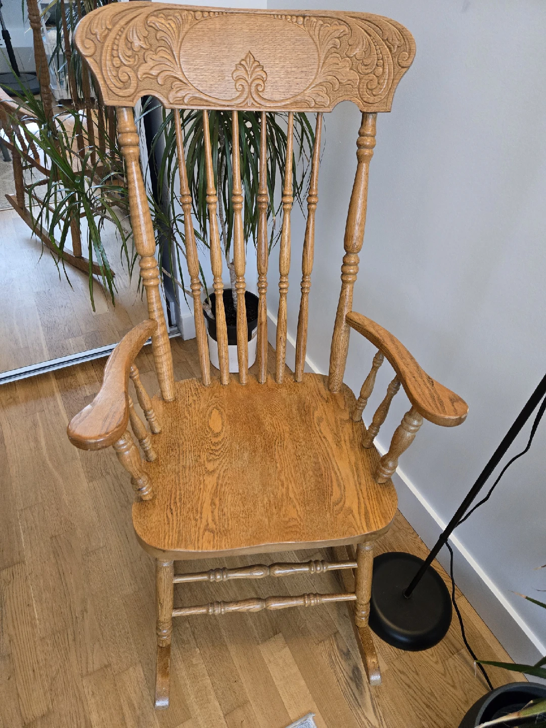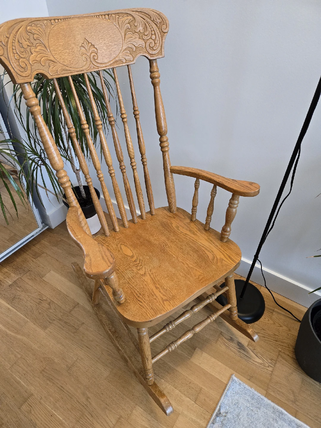 Selling a classic oak wooden rocking chair. It's in great shape and ready to add some cozy charm to your home.