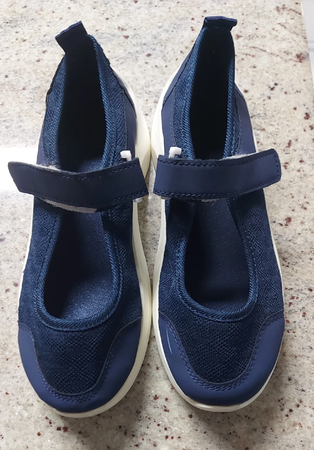530These navy blue Mary Jane style shoes are lightweight in excellent condition! They feature a comfortable design with a strap closure and a white sole. Perfect for everyday wear!