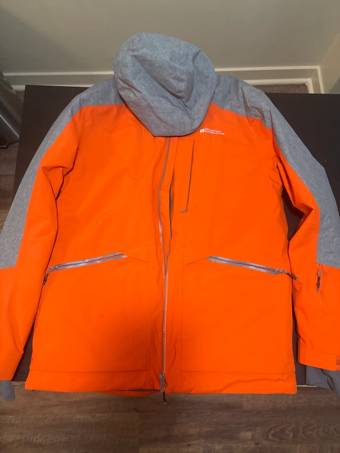 Selling a Mountain Warehouse snow jacket in size large. It's a vibrant orange and grey colour. This jacket is waterproof and breathable, NEVER USED NEW SELLING BECAUSE SIZE WAS INCORRECT FOR ME. Delivery possible in Midtown Toronto.