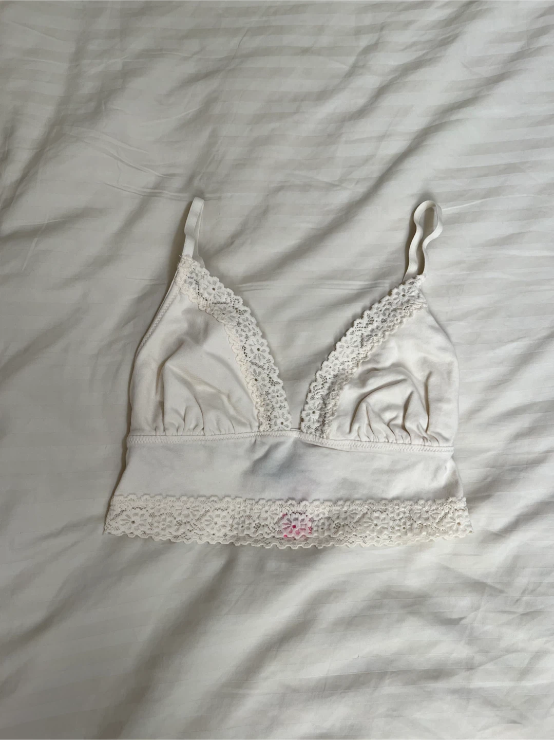 1 / 41 / 4Buy & SellLa SENZA White Lace BraletteLa SENZA White Lace Bralette$5Chic white bralette with lace detailing. Soft and stylish. Excellent used condition. See photos for composition and care instructions.ConditionLike newSizeextra smallWHERE TO MEETQueen Suds LaundryView MapSELLERverifiedfwuTrinity Bellwoods20514 reviews0 chats·3 favorites·28 viewsSEND CHAT TO SELLERHi fwu! I’m interested in your listing.Hi fwu! I’m interested in your listing.Get the Karrot app to chatSign In to chat