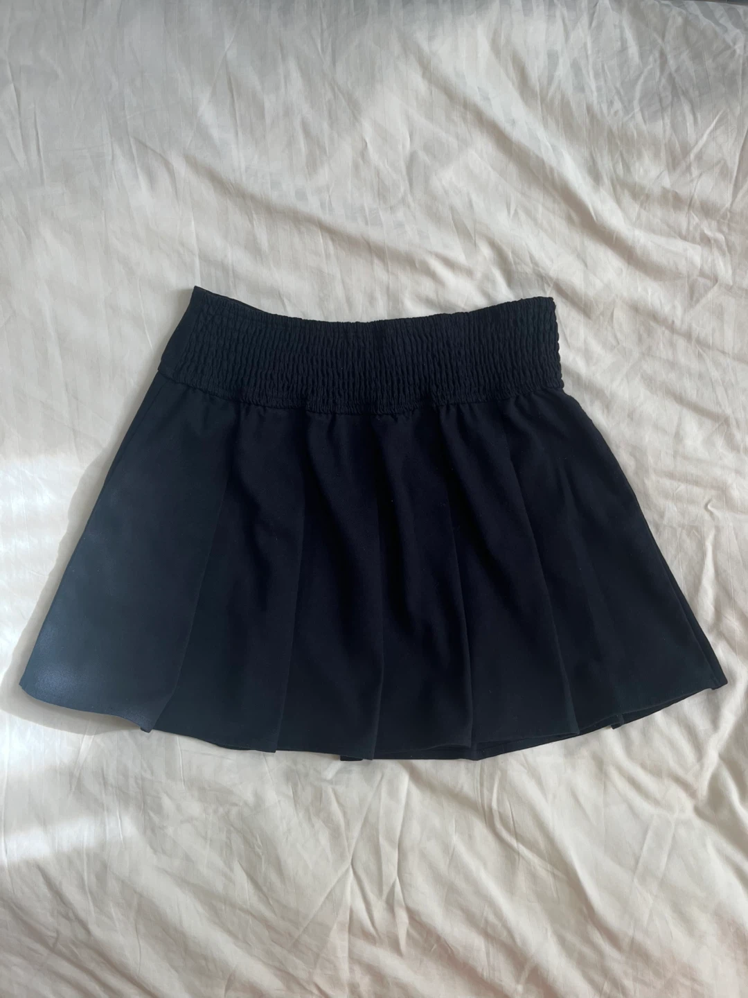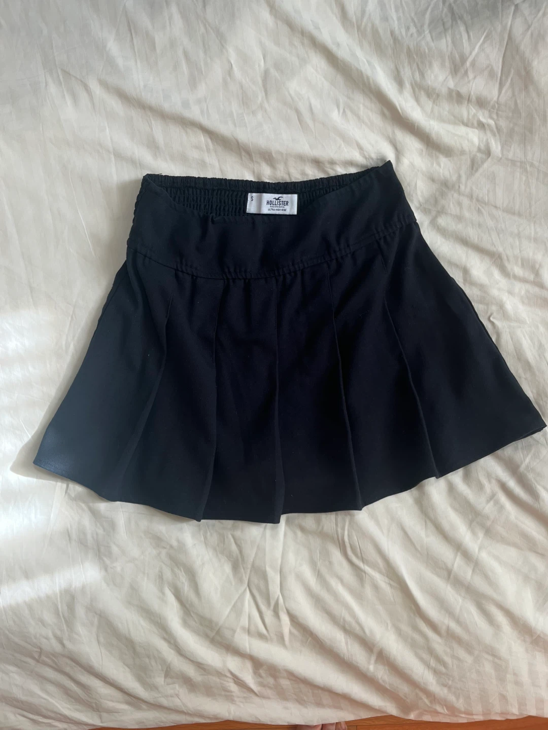 Stylish black skirt by Hollister. Features a flattering fit and classic pleat design. Versatile for various fashion styles.