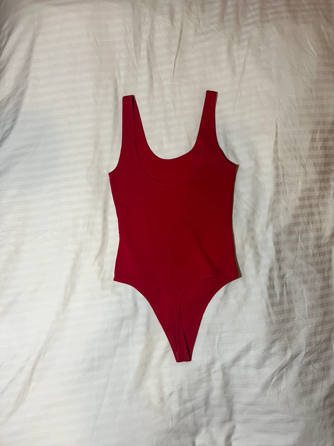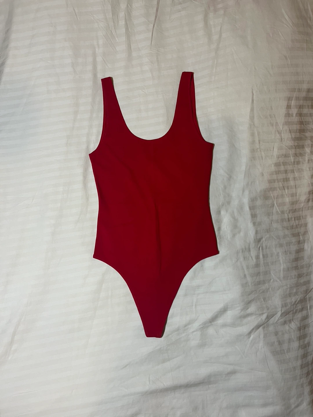 This is a scoop-neck bodysuit with a thong-cut bottom. It's made from a naturally breathable cotton blend with just the right amount of hug-you-in stretch.