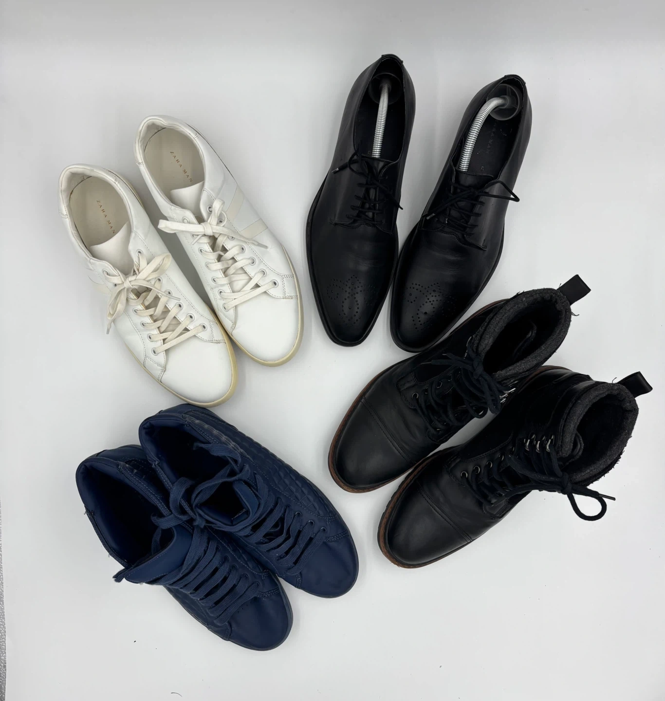 161Selling a number of Zara Man Shoes and boots. All in excellent condition White $30 AVAILABLE Black boots $40 AVAILABLE Black dress shoes SOLD Blue ankle $25 AVAILABLE