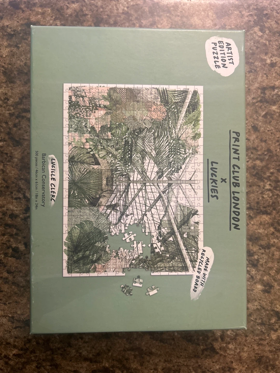 Selling a Print Club London Luckies x Lucille Clerc Artist Edition Puzzle! This puzzle features the Barbican Conservatory design and contains 500 pieces. It's made with recycled board and measures 46cm x 61cm (18in x 24in)