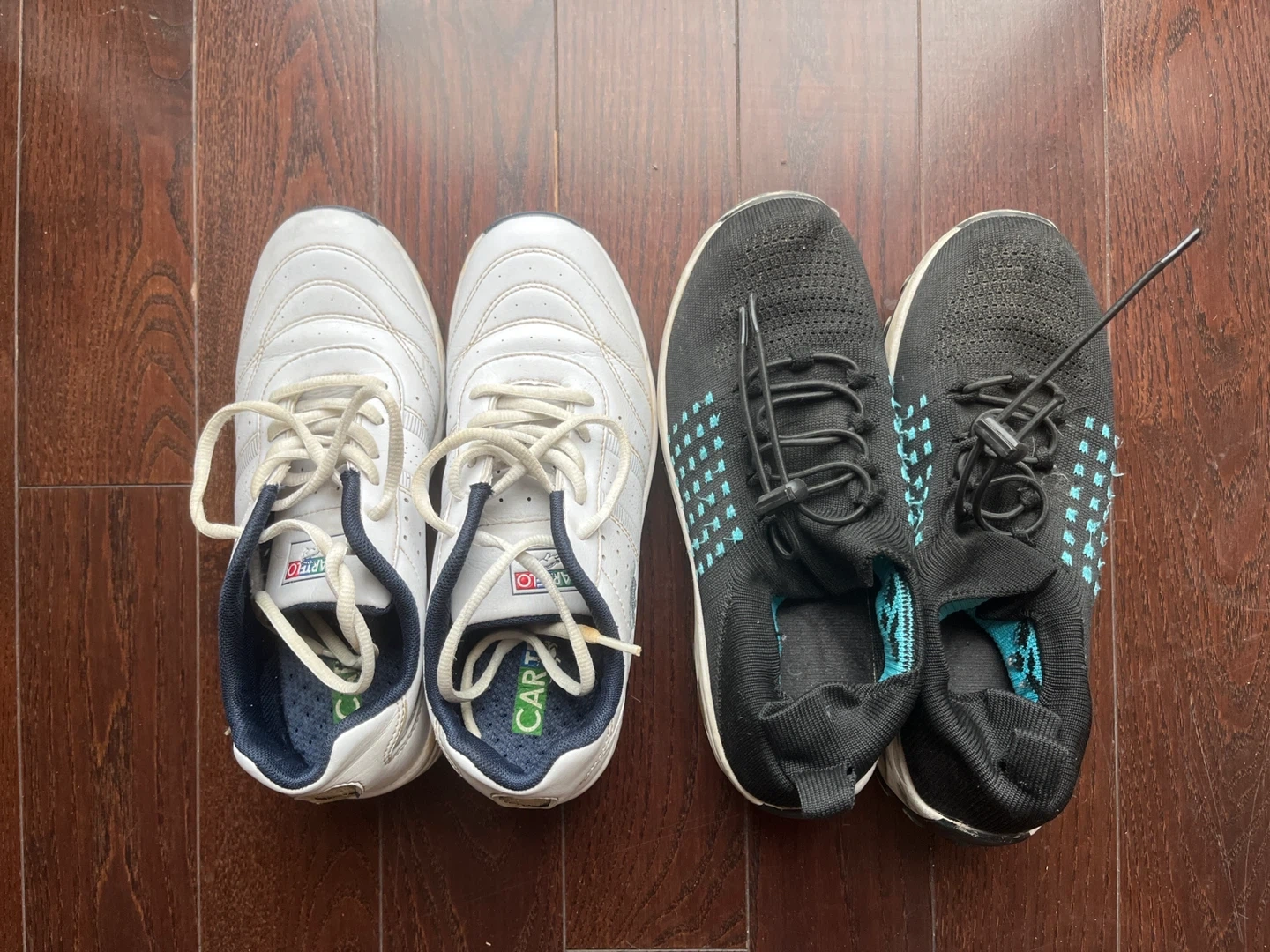 Selling two pairs of shoes: one white pair and one black pair. Both are in used condition. 8 for each