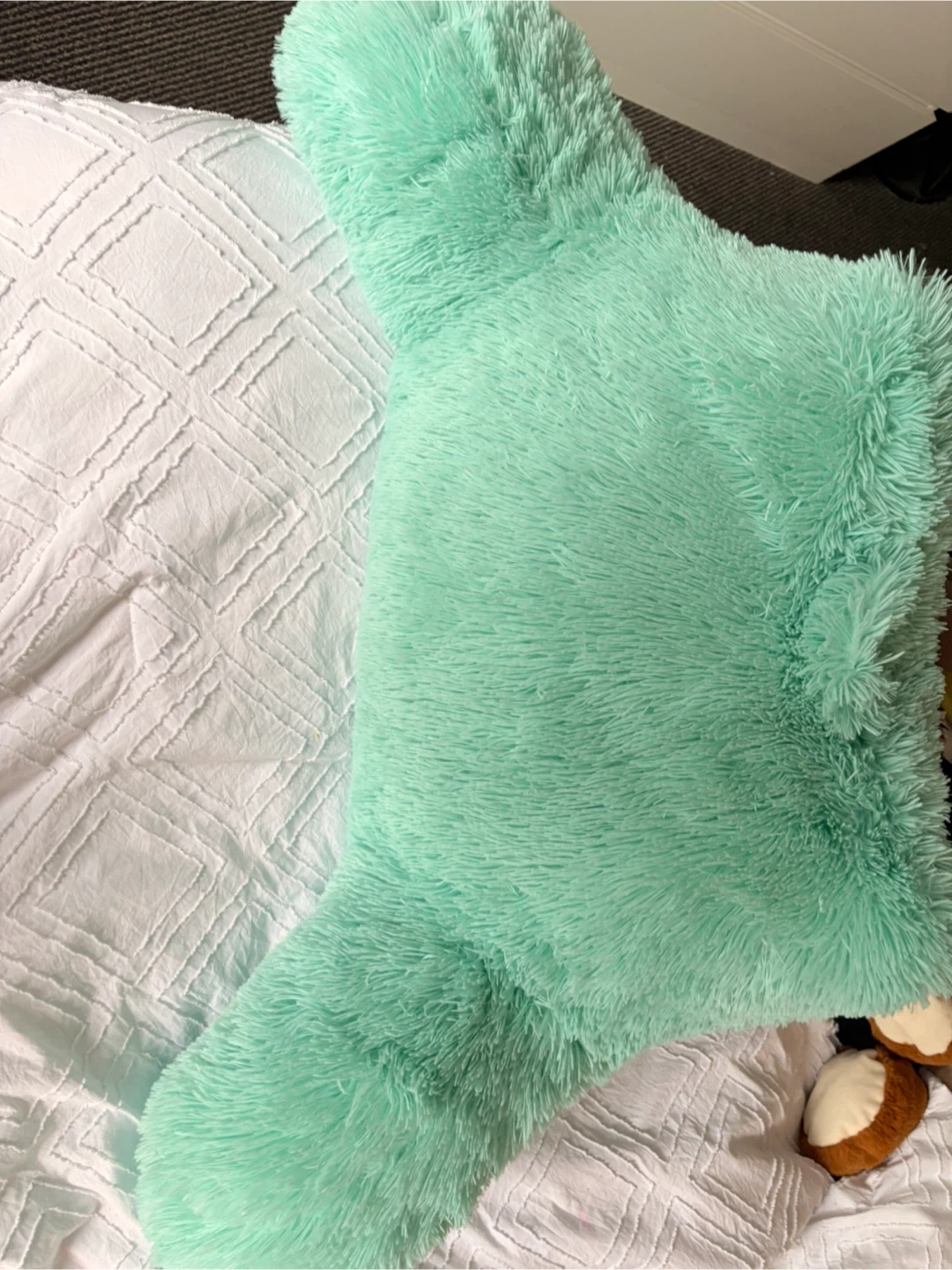 Selling a super comfy mint green fluffy pillow! Cute and firm support pillow, great for small spaces, use it in bed while doing schoolwork or relaxing while surfing the net.