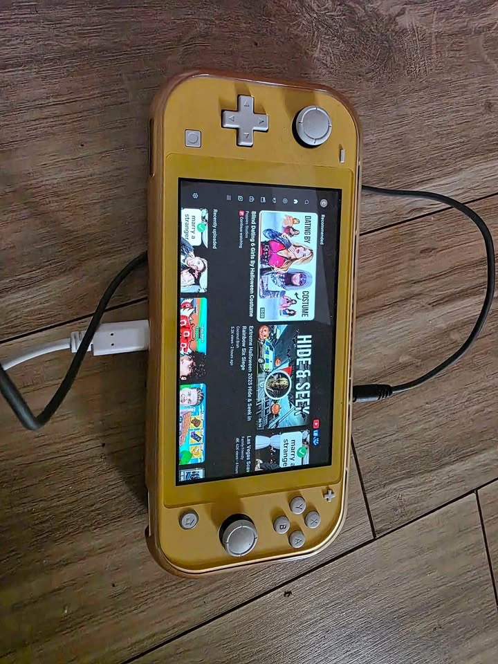 Hardly used Nintendo switch light! Comes with Carrying case, protection case, USB Charging cord, Headphones and the original box. Has been factory reset.