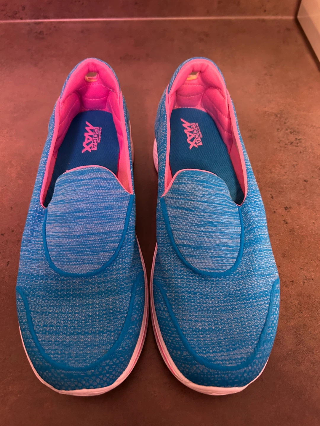 Brand new Skechers GOwalk Max women's shoes in size 6. Only tried on, found something I like better. They're a lovely blue and pink colour.