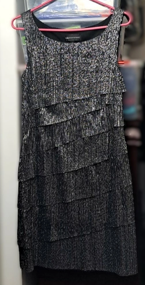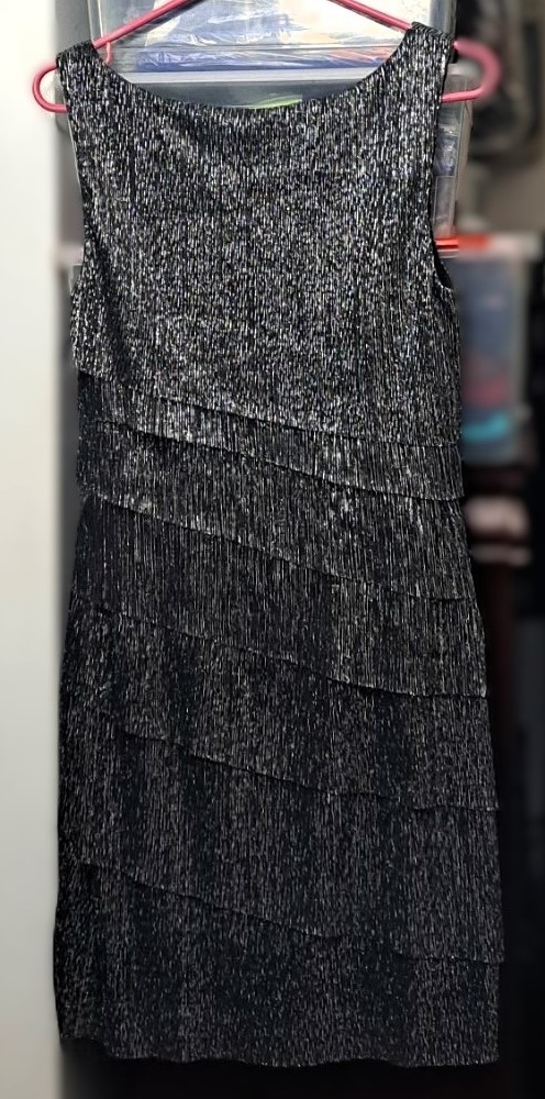 New Women's Sleeveless Multi-Layered Metallic Party Dress Medium